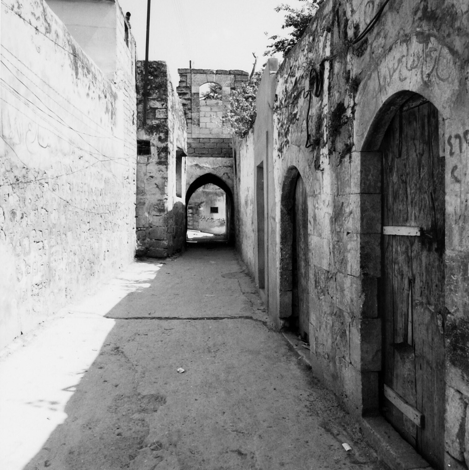 Oude woning met poort van een vertrek op de patio te...