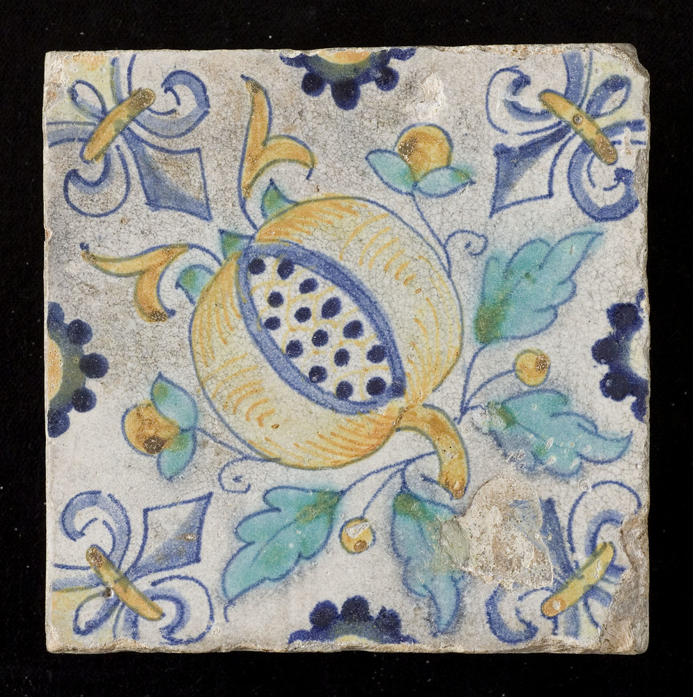 Tegel van keramiek met tinglazuur, voorstellende: or...