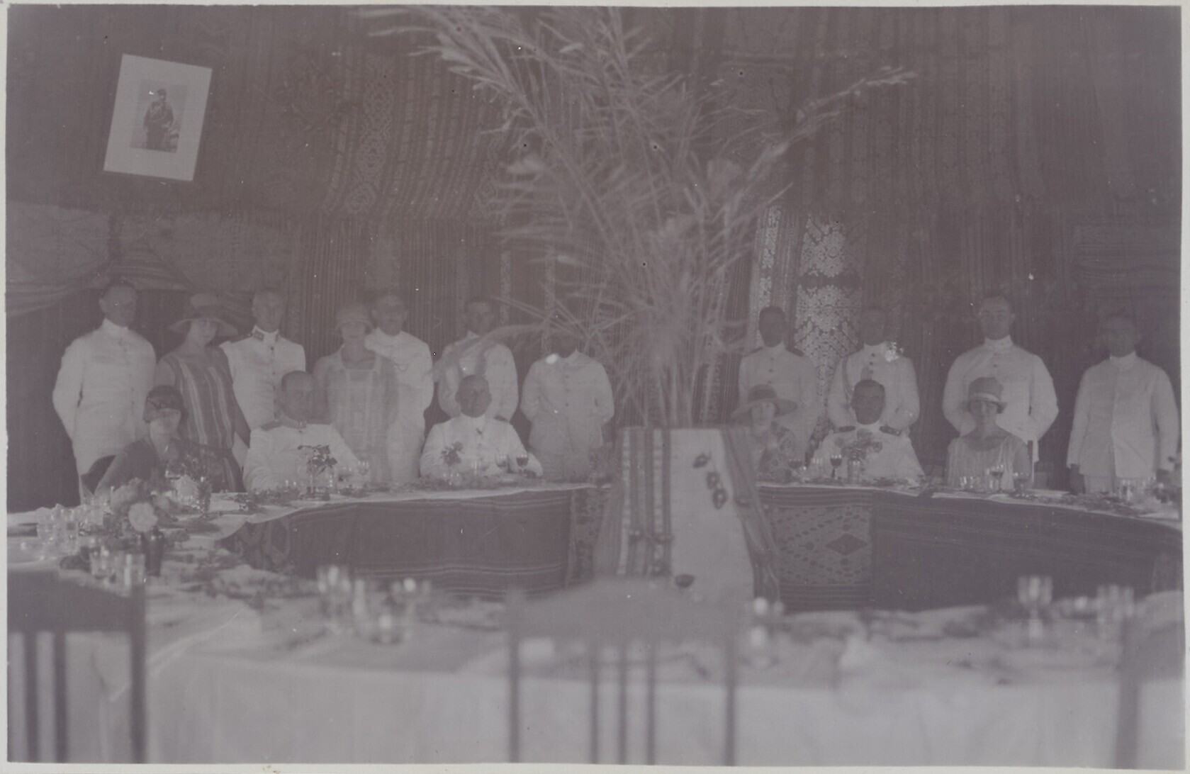 Gezelschap onder wie Indische mannen en Nederlandse ...