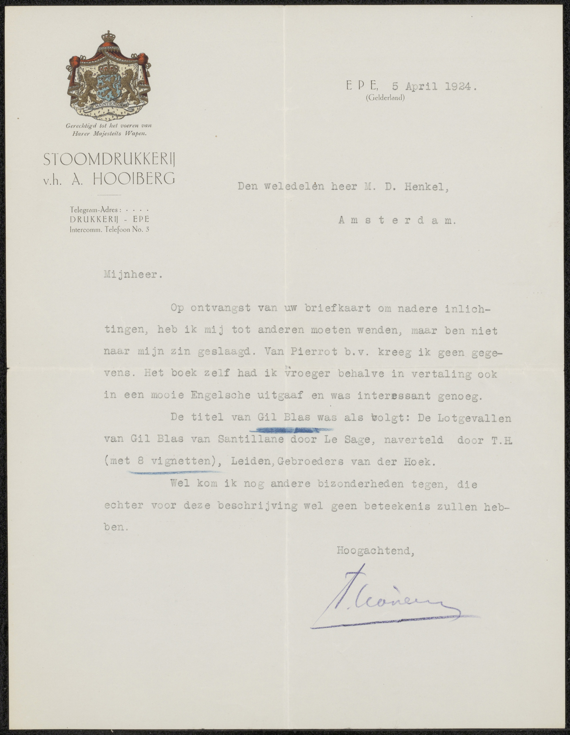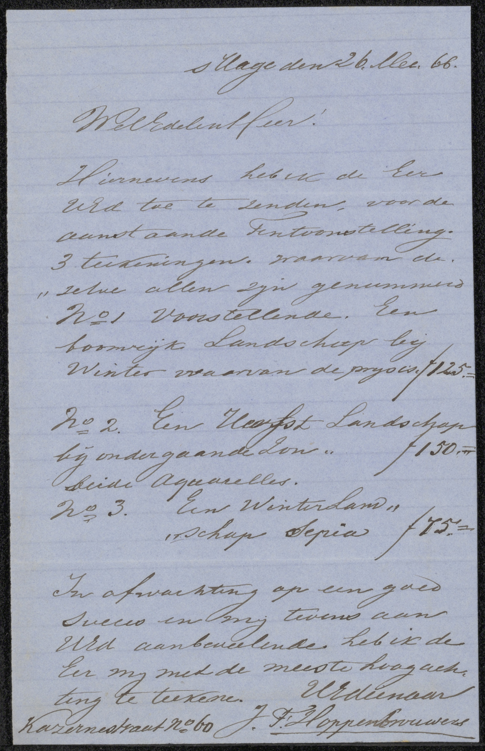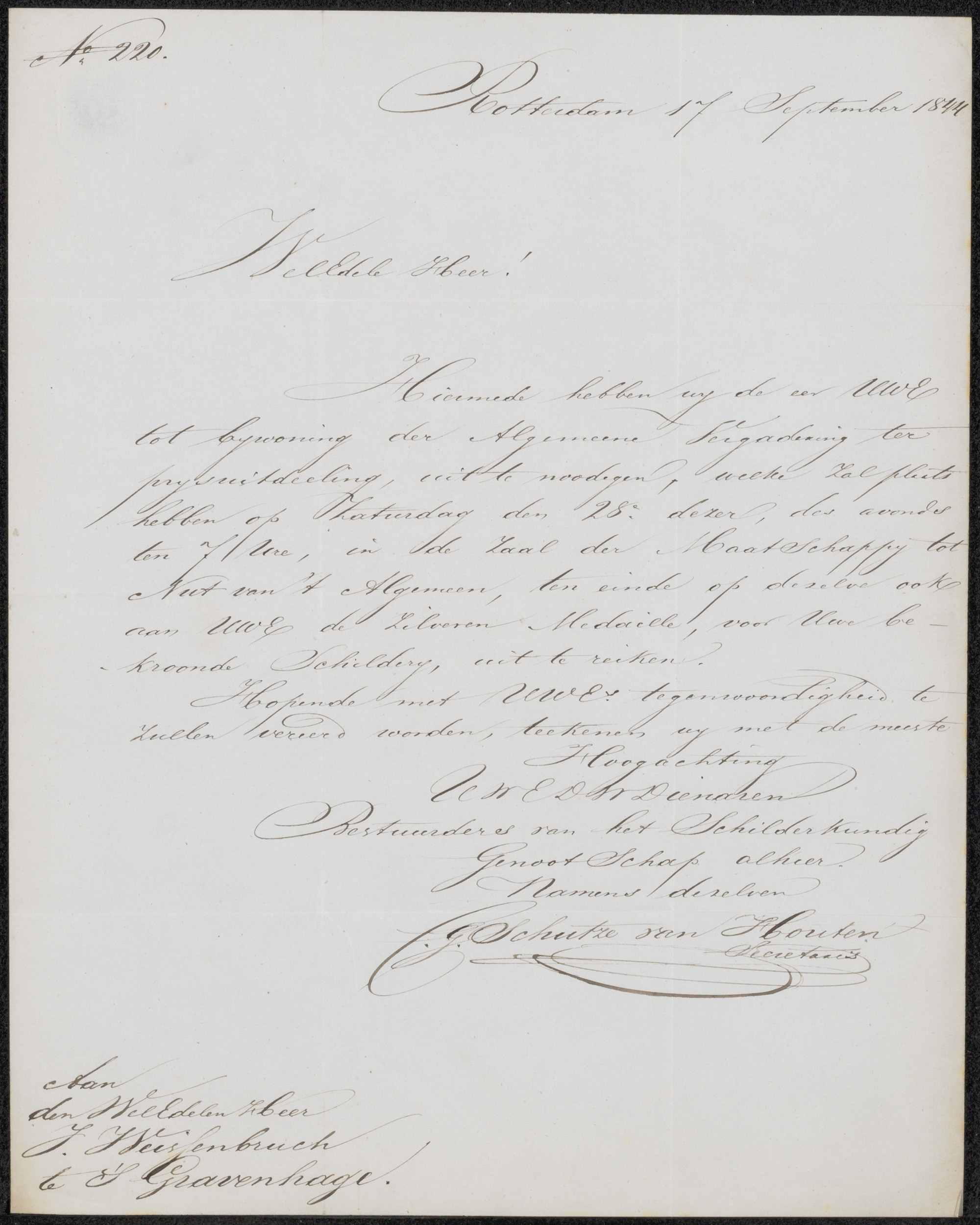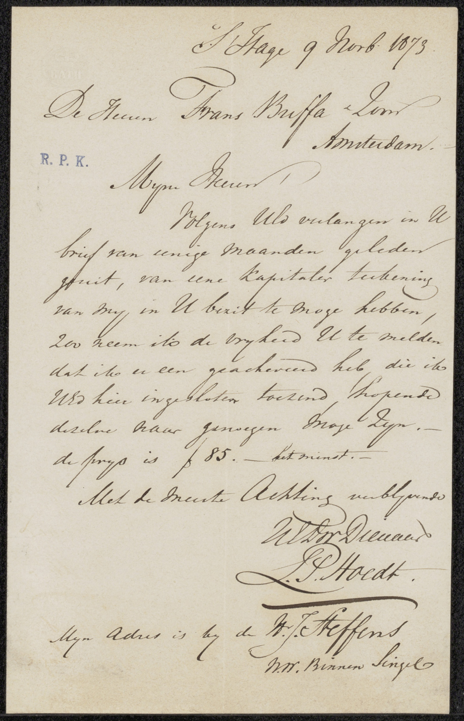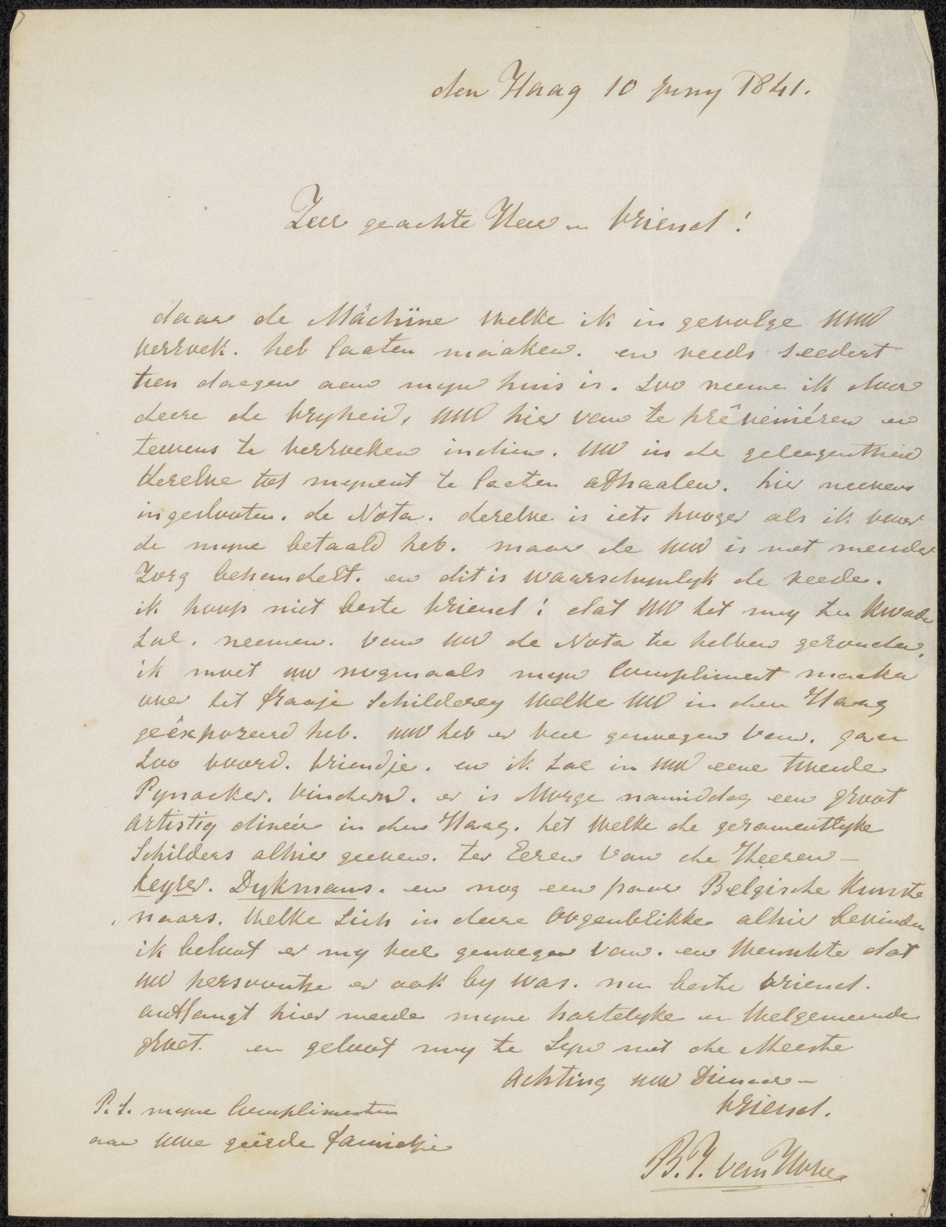 Brief aan Adrianus Wilhelmus Nieuwenhuyzen