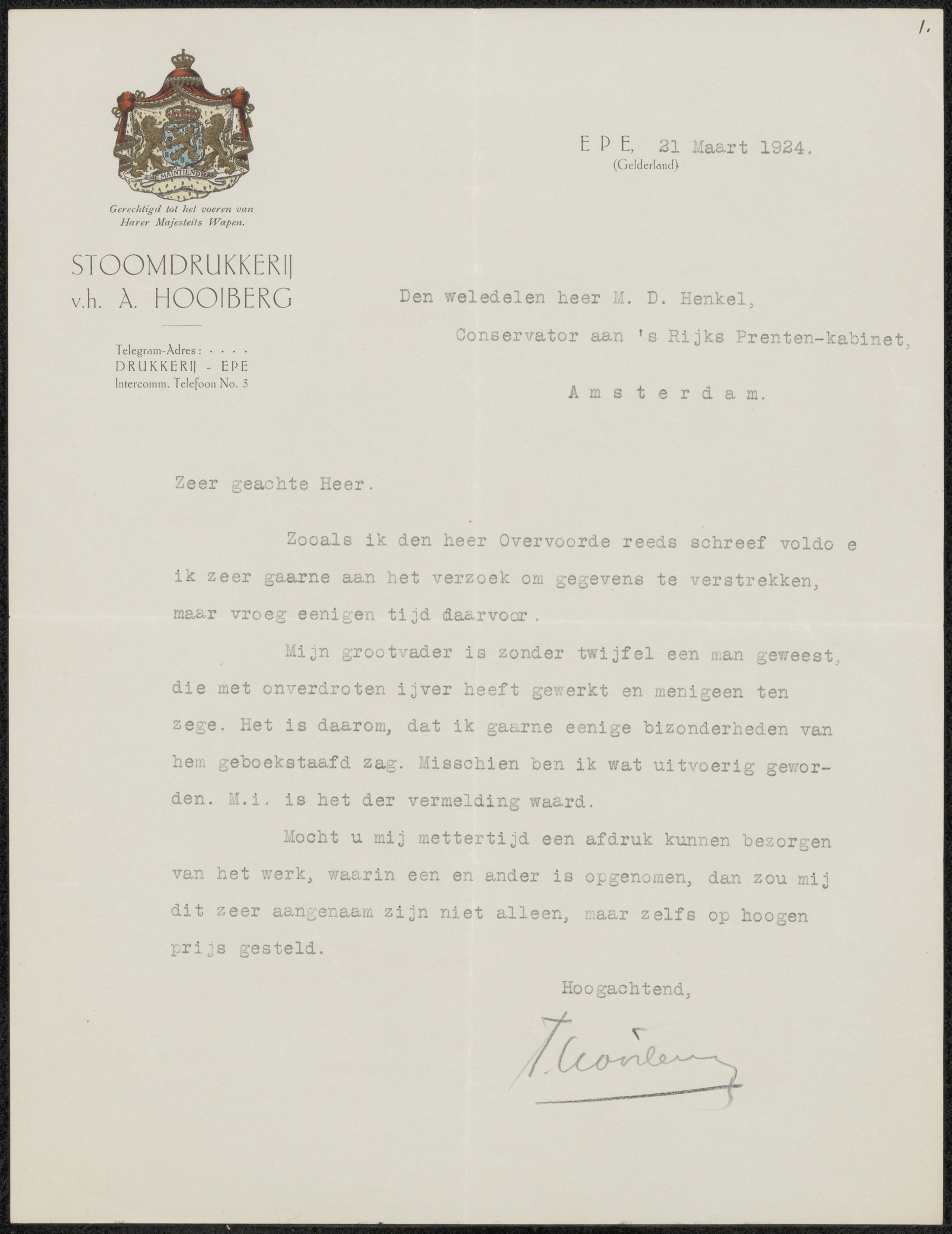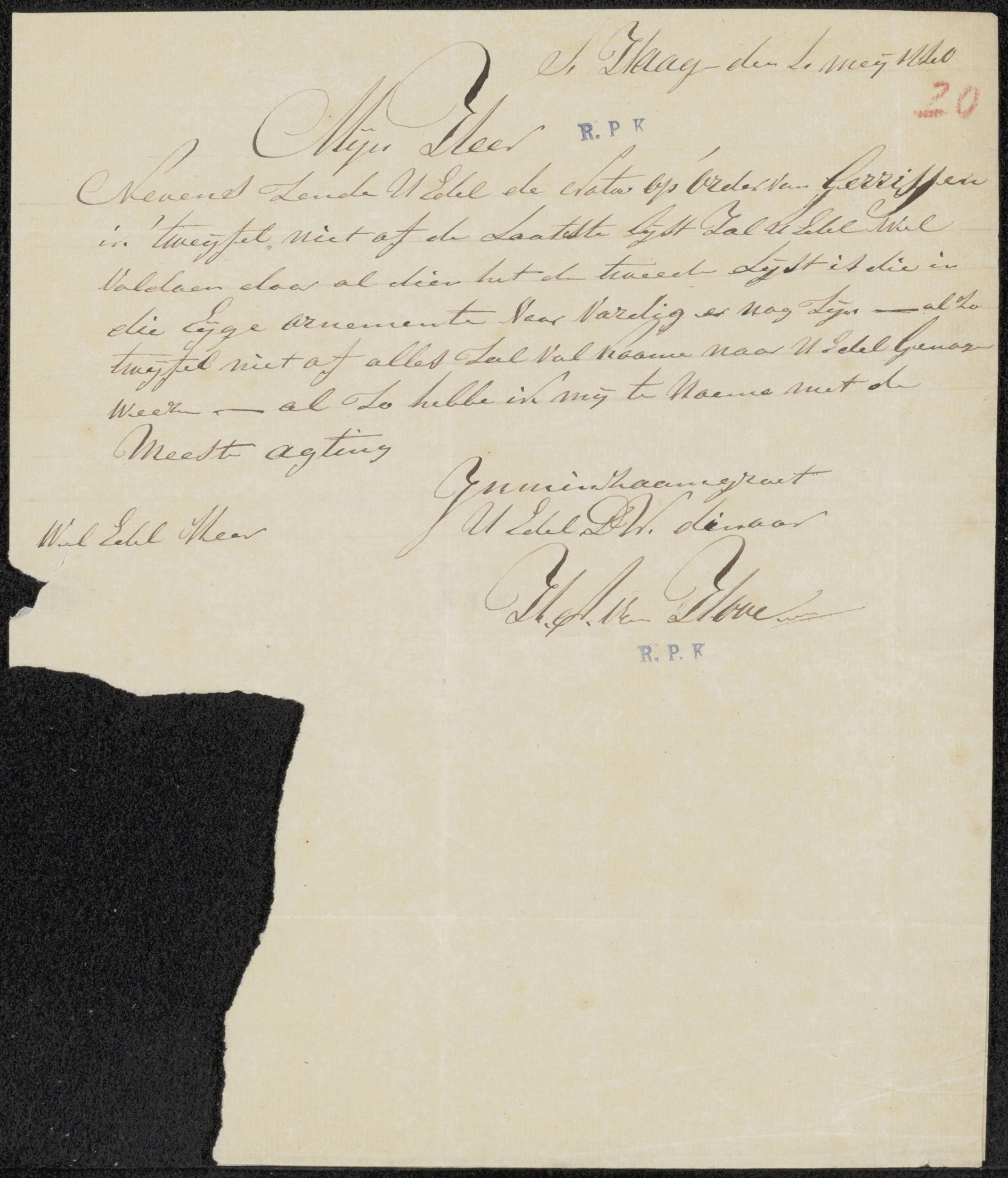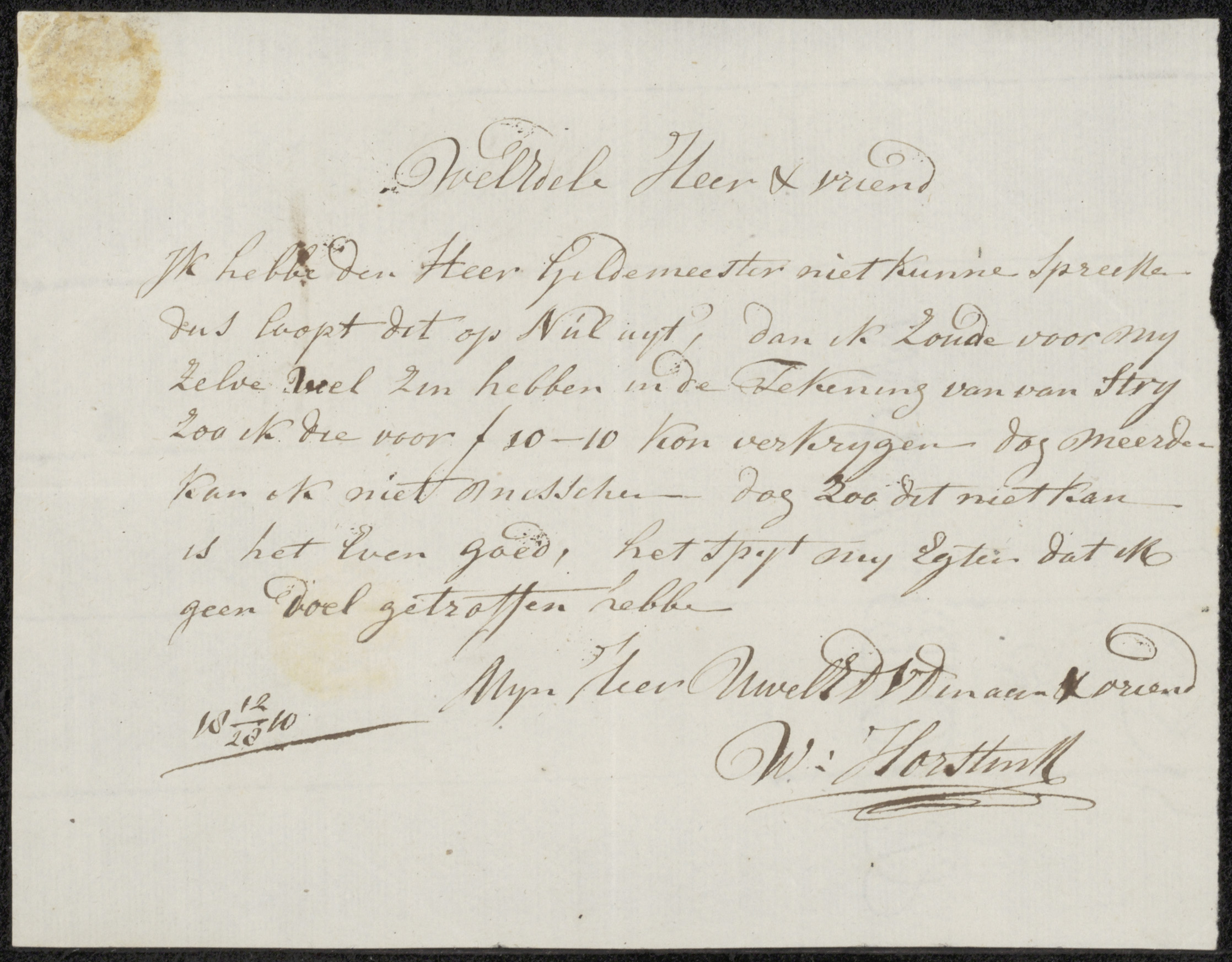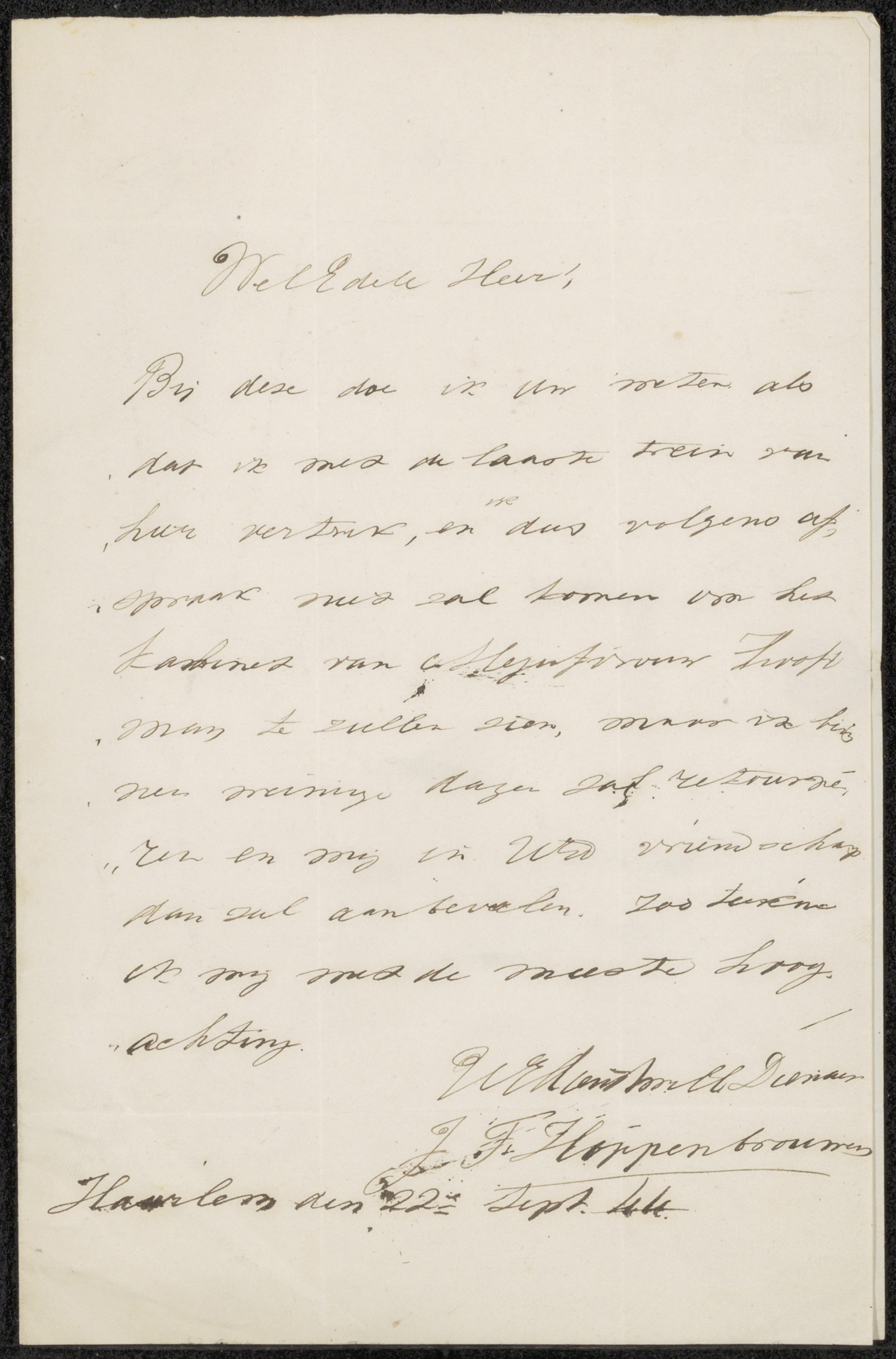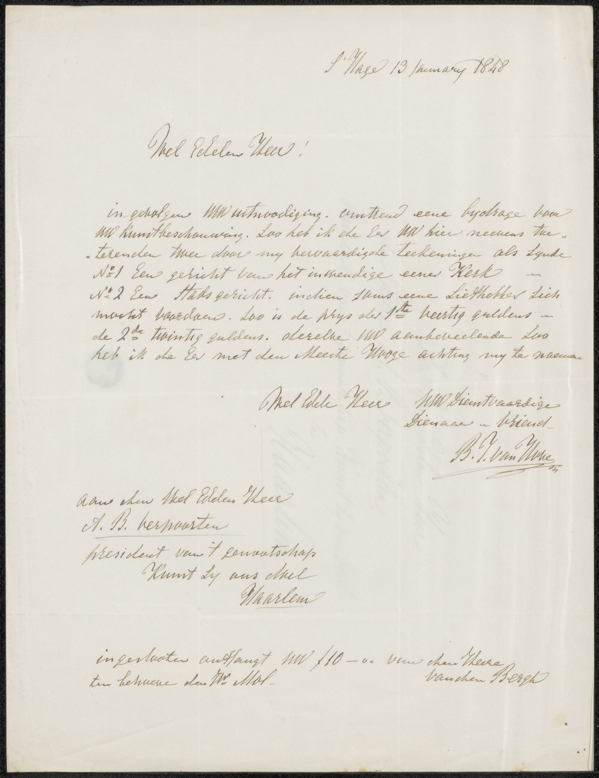 Brief aan baron Huibert Gerard Nahuys van Burgst