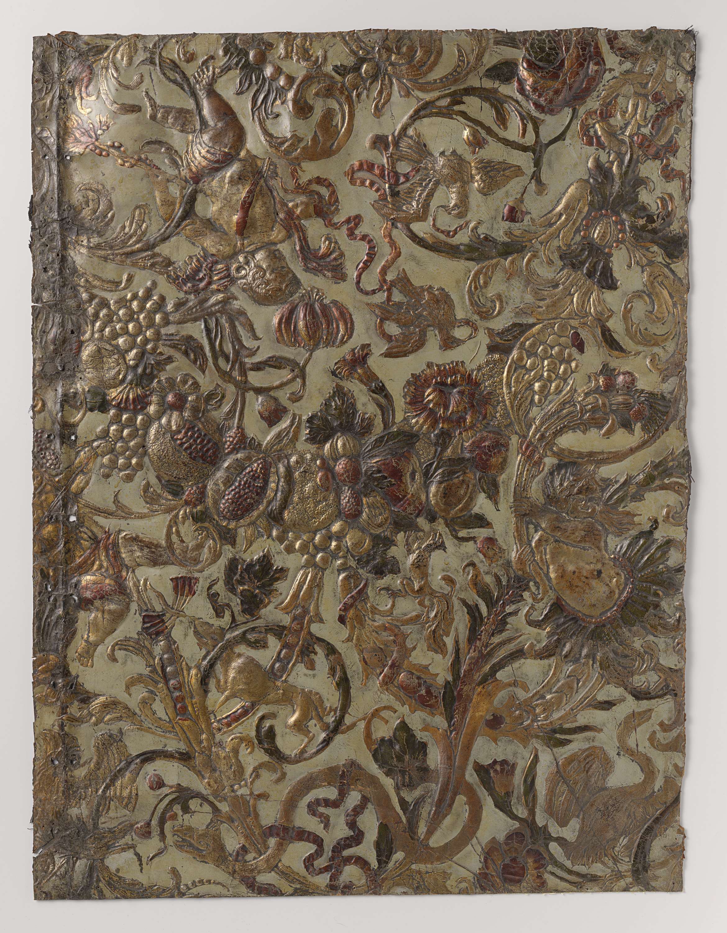 Boord van verheven goudleer, gedecoreerd met twee na...