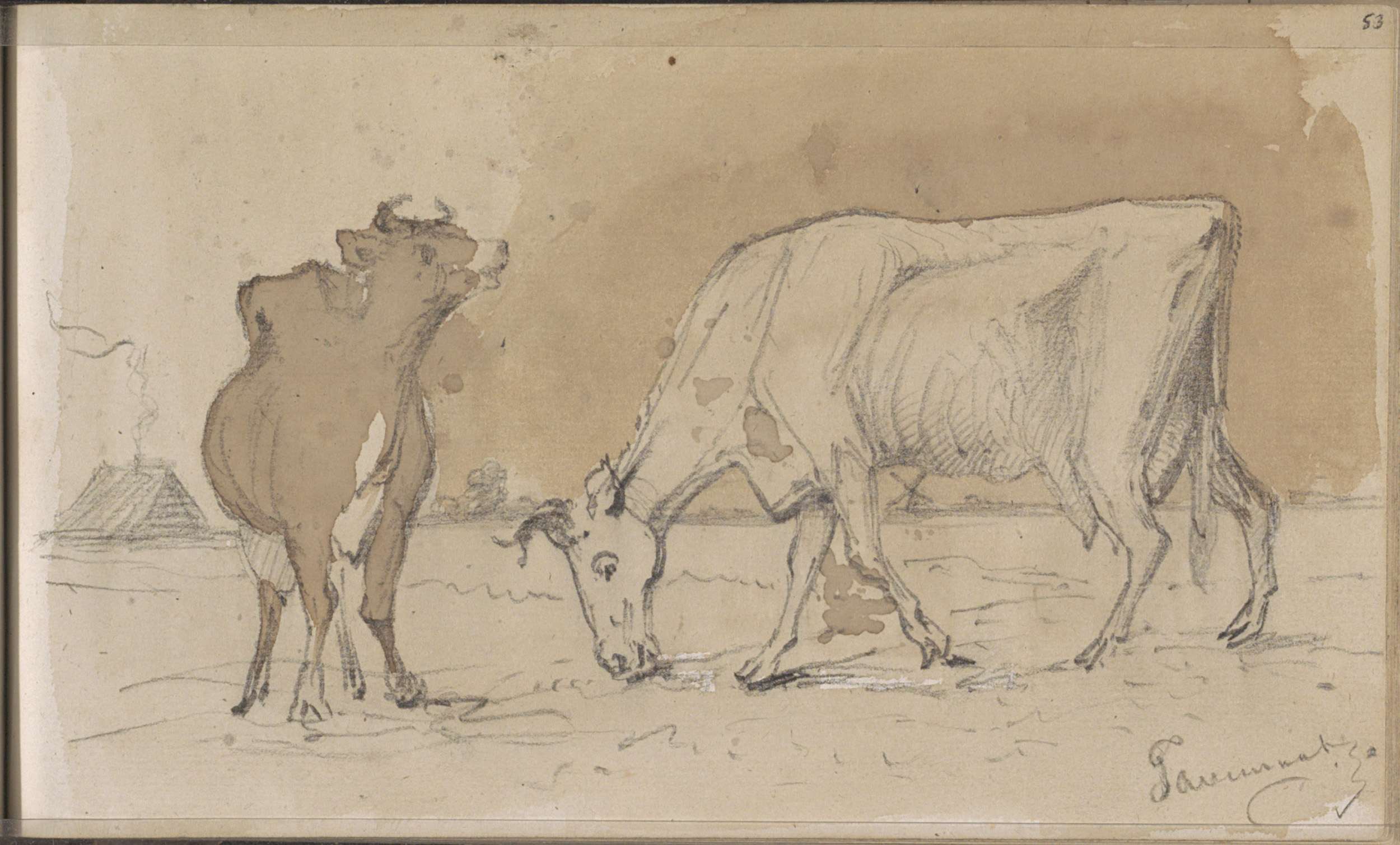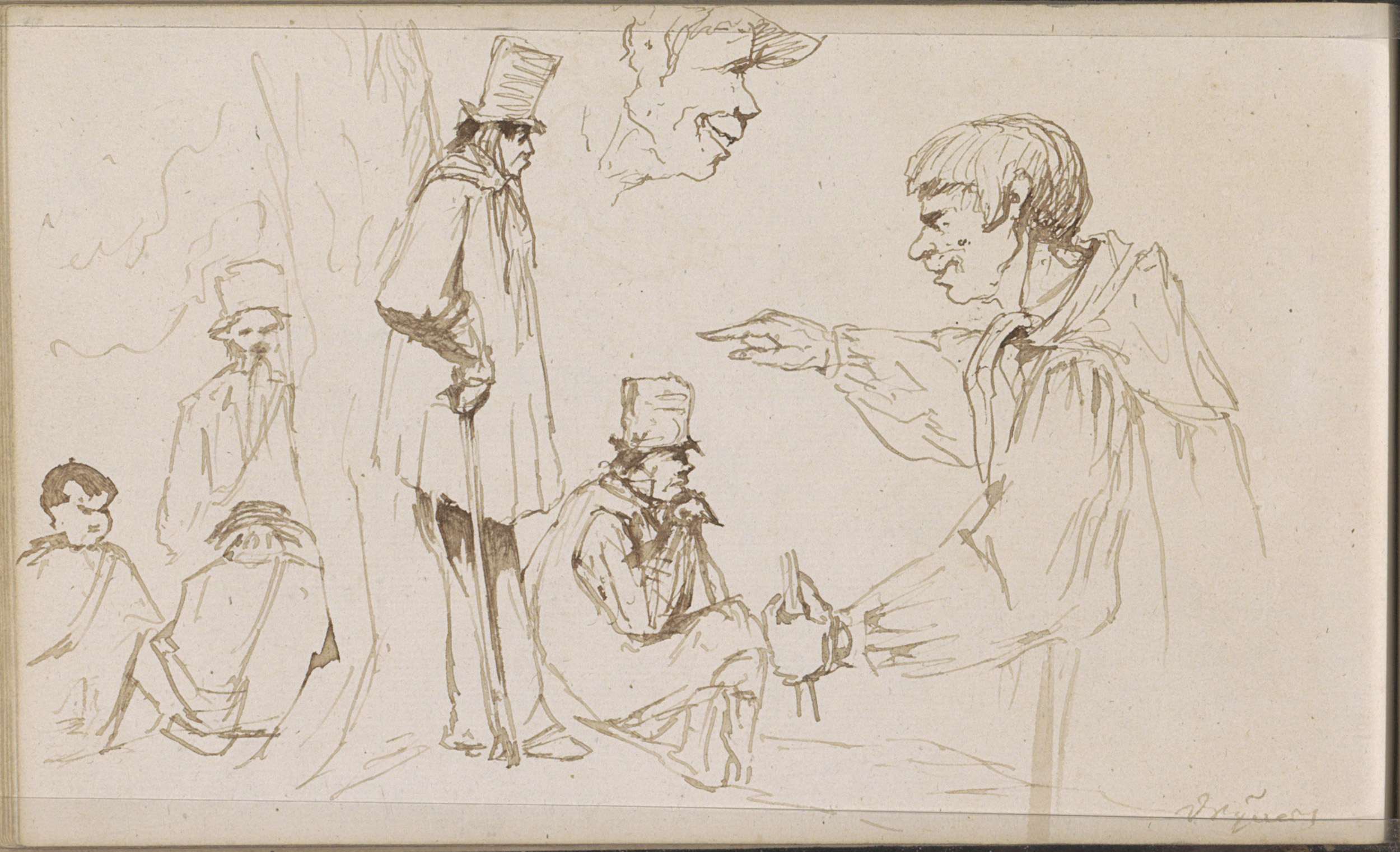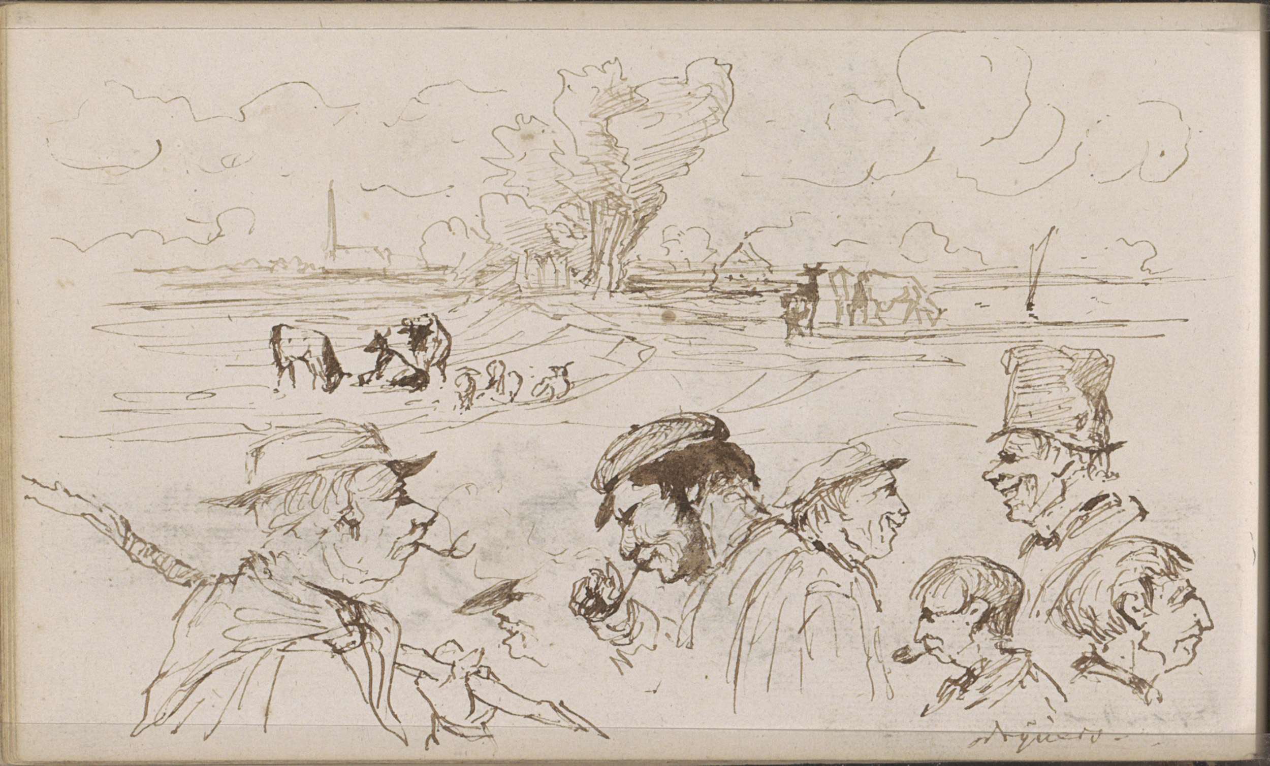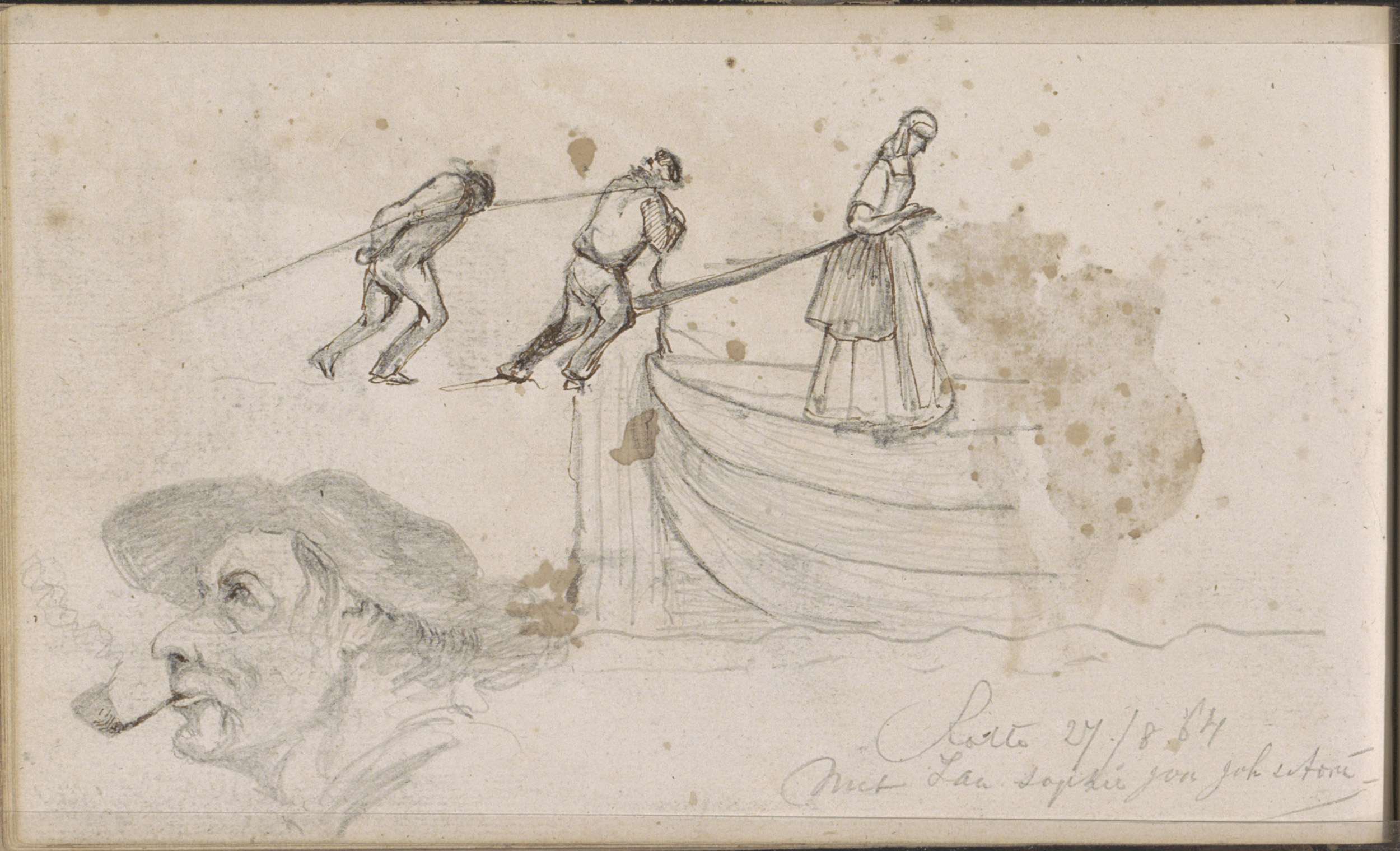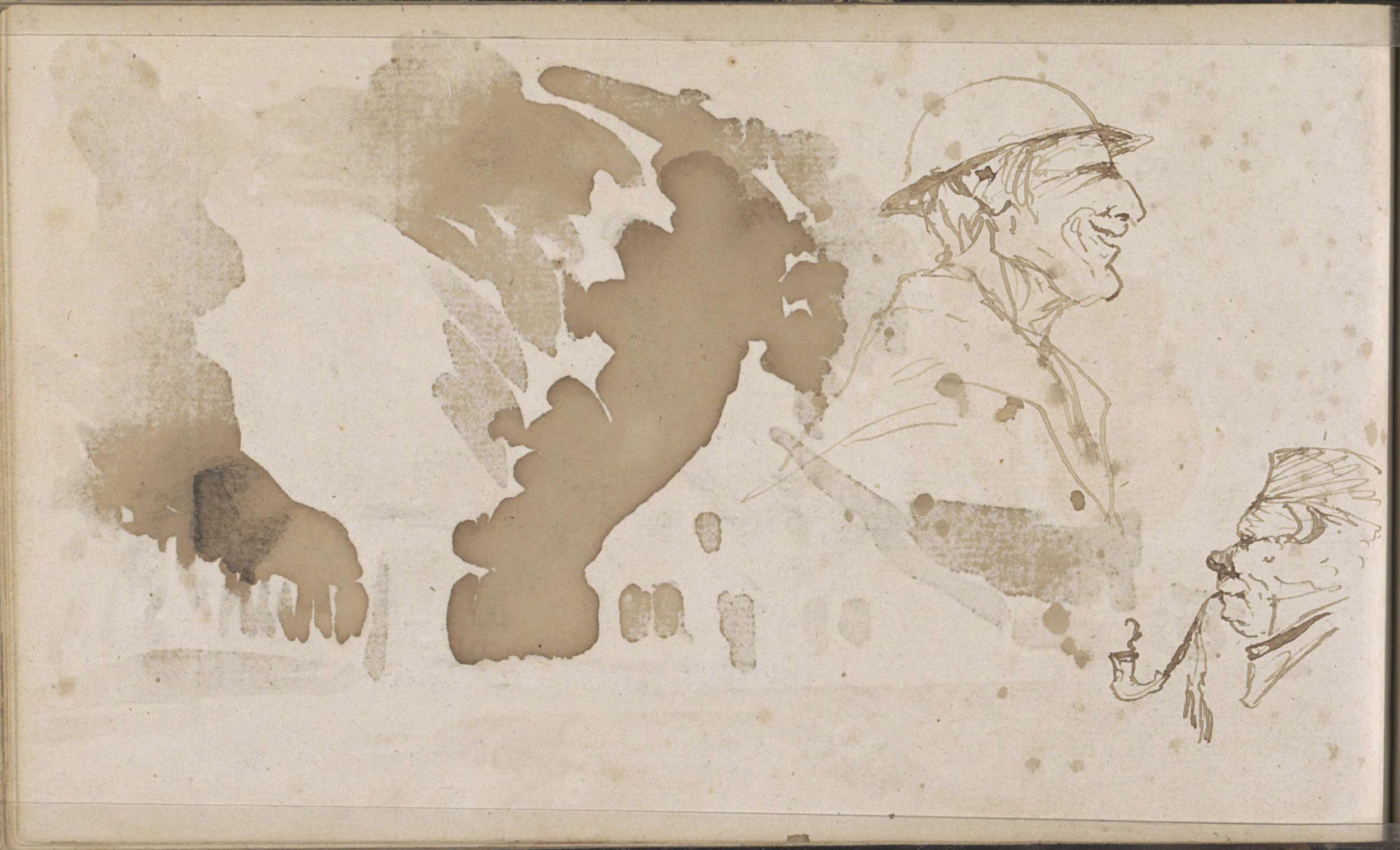 Studieblad, onder andere met een kop van een pijprok...