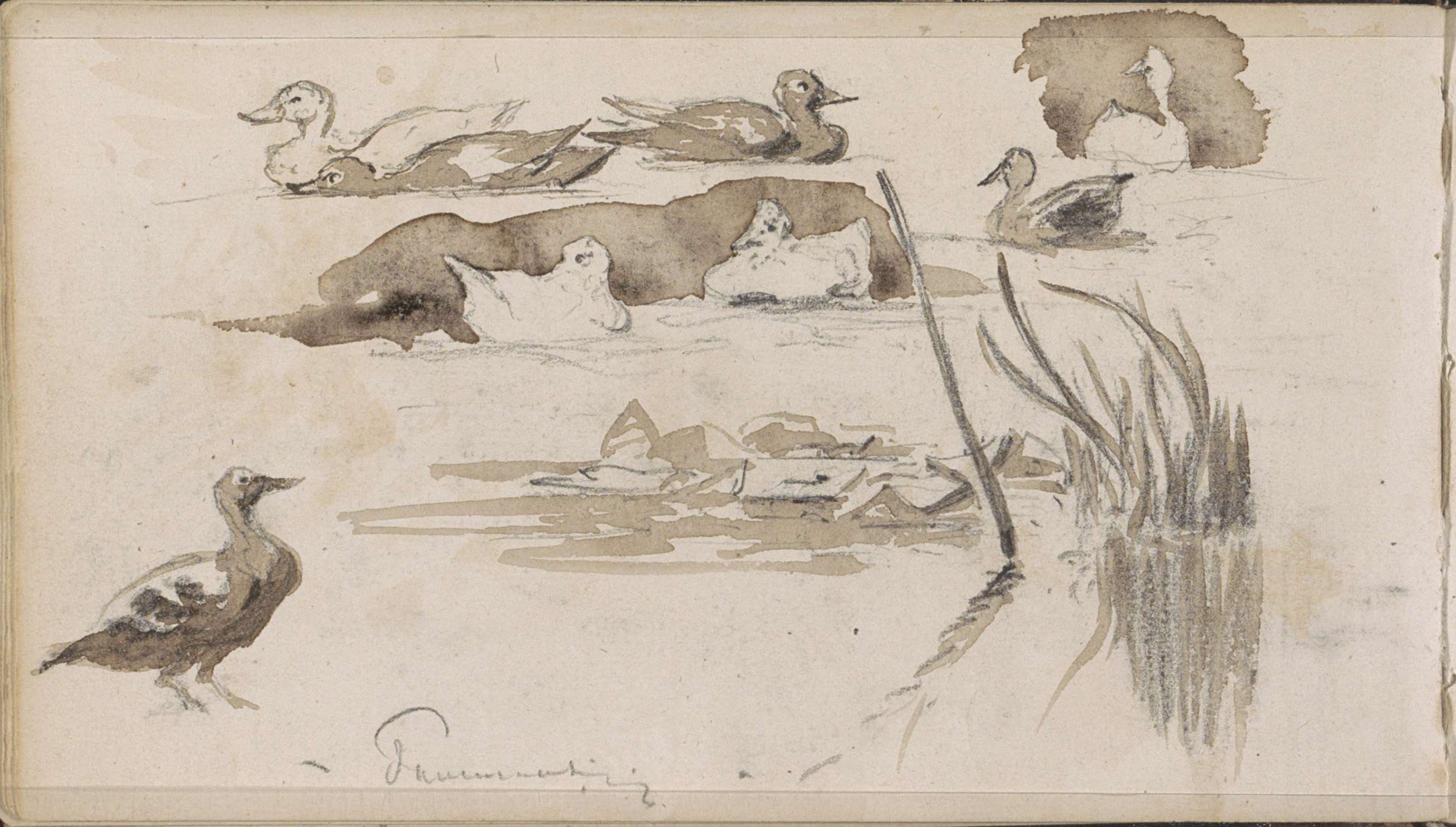 Eenden op het water en rietstengels