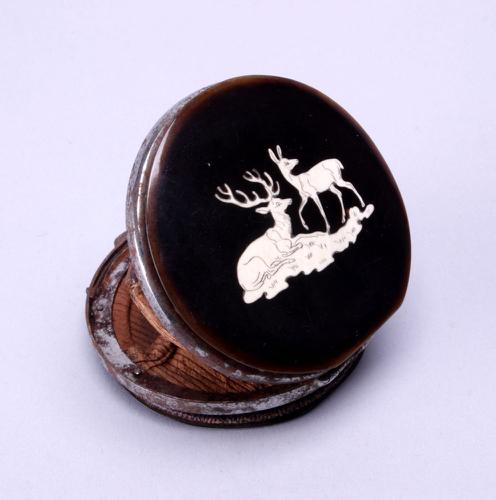 Hoornen doosje met jachtvoorstelling