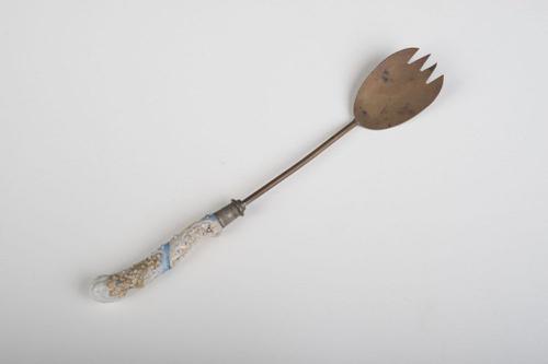 Messing slavork met porseleinen pistoolheft