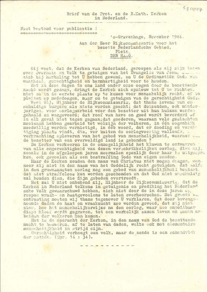 Brief van de Prot. en R. Kath Kerken in Nederland aa...