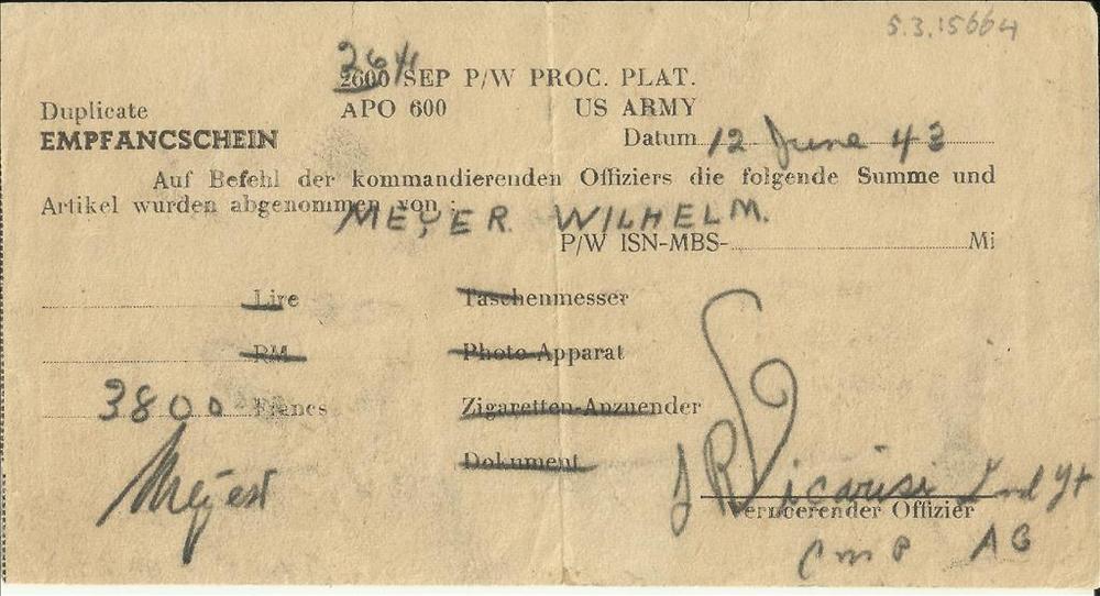 Duplicate Empfangschein voor Wily Meyer