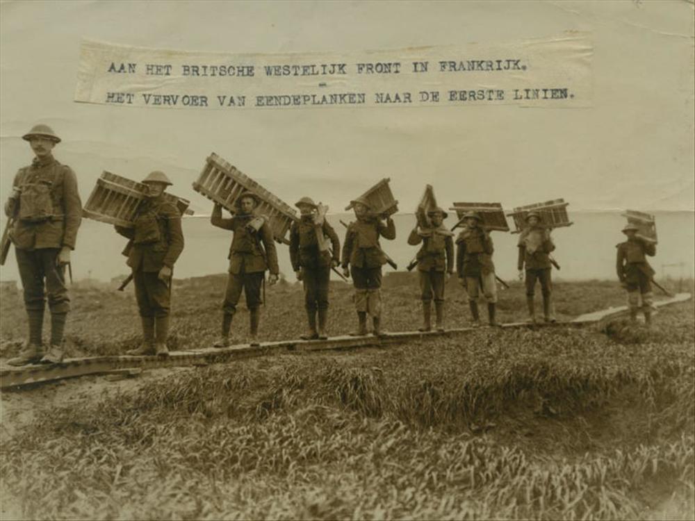 WO I; Britse militairen met duckboards