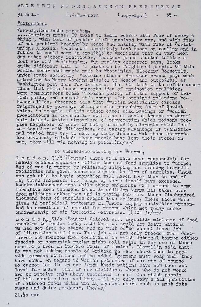 Algemeen Nederlandsch Persbureau, mededelingen, 31 m...