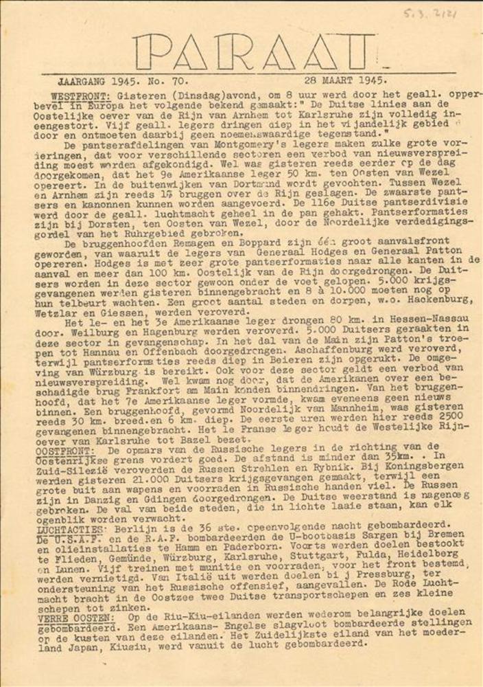 Paraat Jaargang 1945 No. 70, 28 Maart 1945