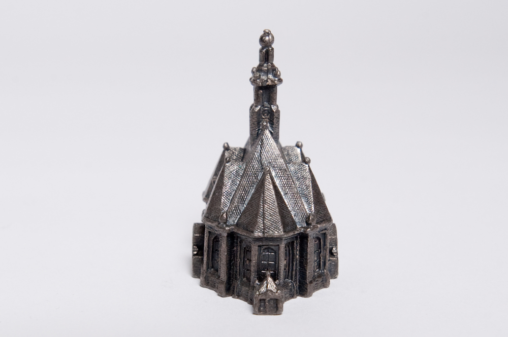 Het topstuk (verzilverd miniatuur van de Nieuwe Kerk...