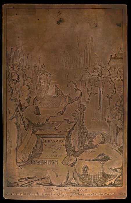 Koperplaat voor gravure (titelprent) met onder meer ...