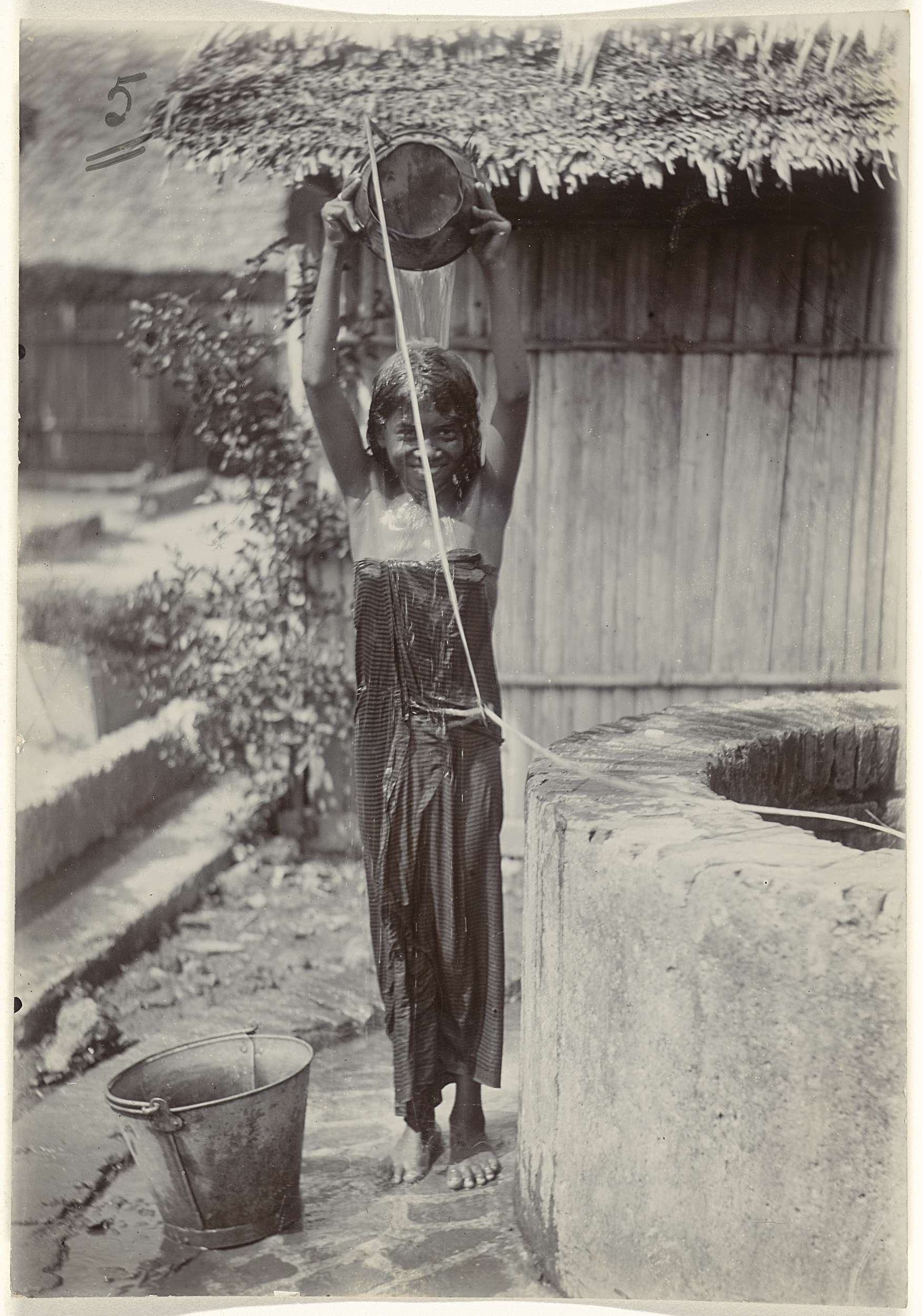 Portret van een onbekend meisje dat zich wast bij ee...