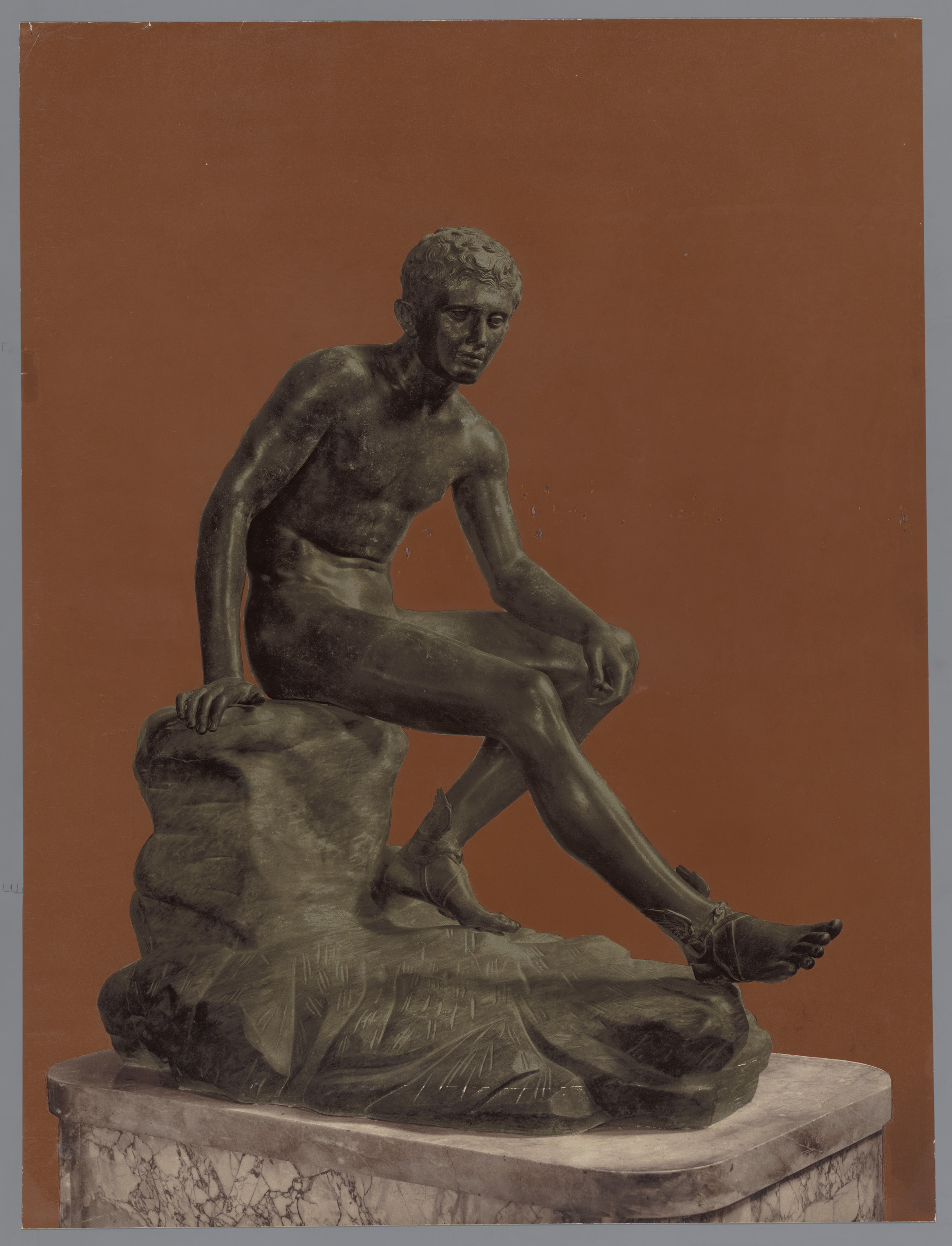 Beeld van Mercurius rustend op een steen