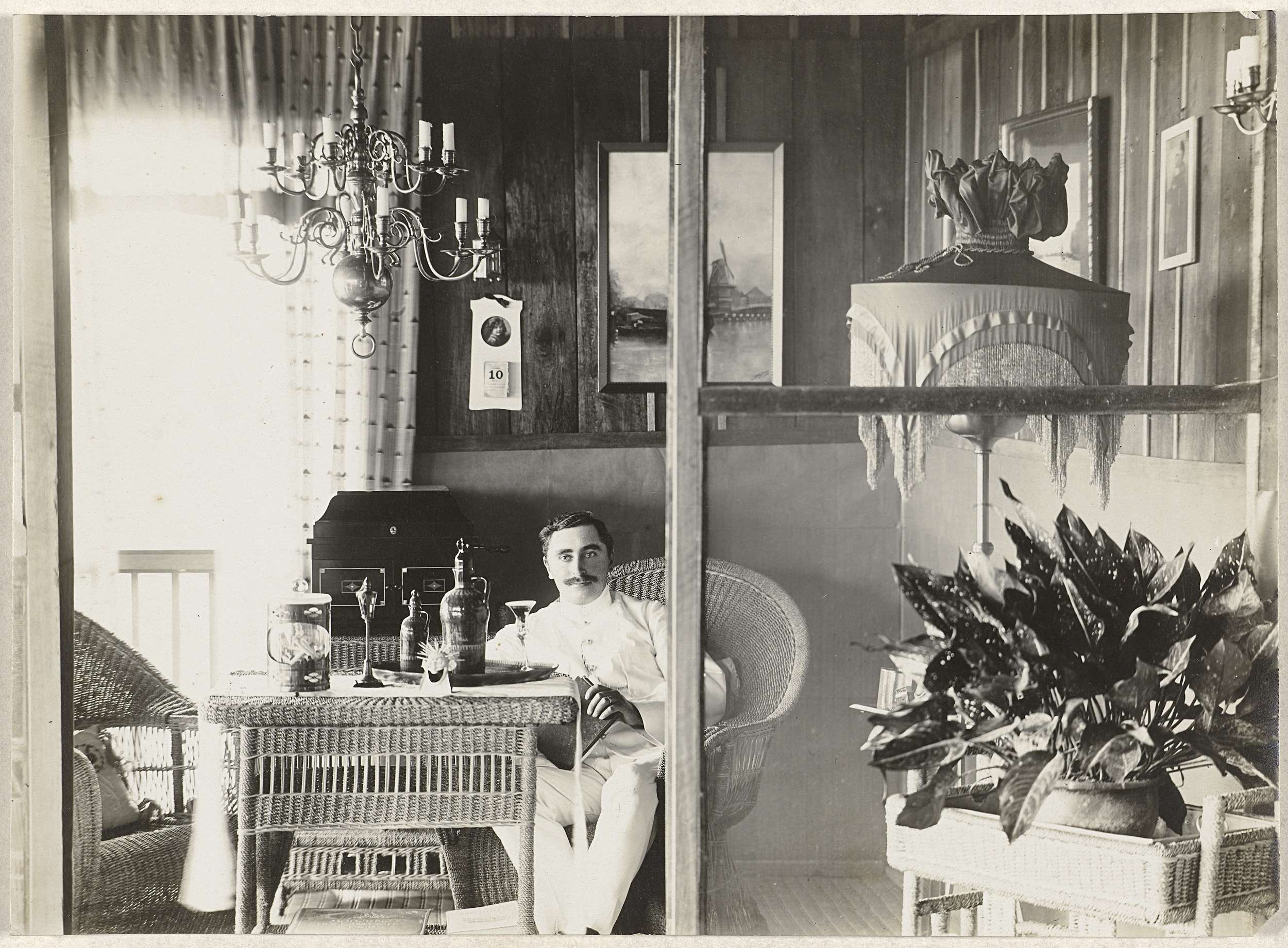 Portret van een onbekende man in een tropenpak in ee...