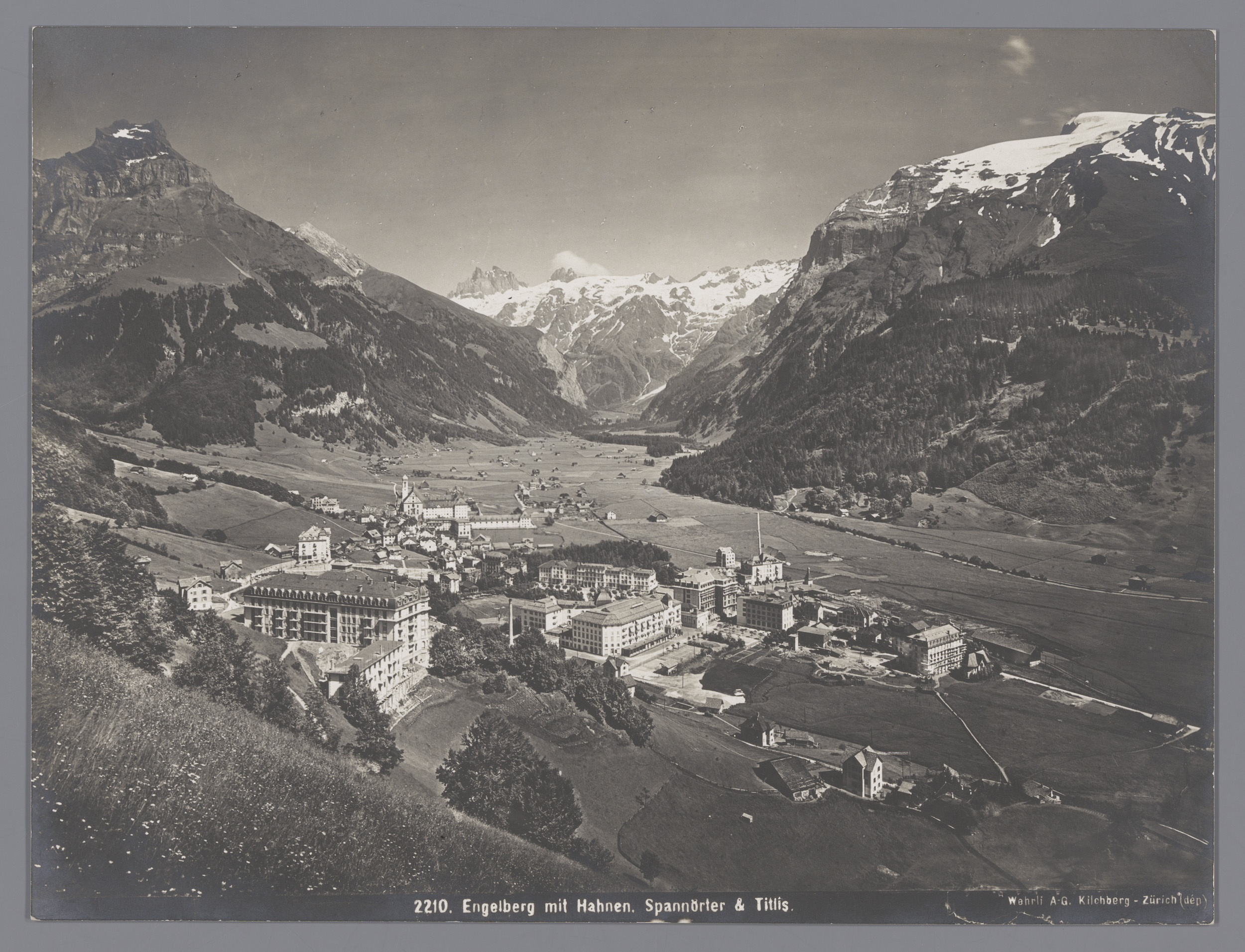 Gezicht op Engelberg, in de verte de Titlis, de Grot...