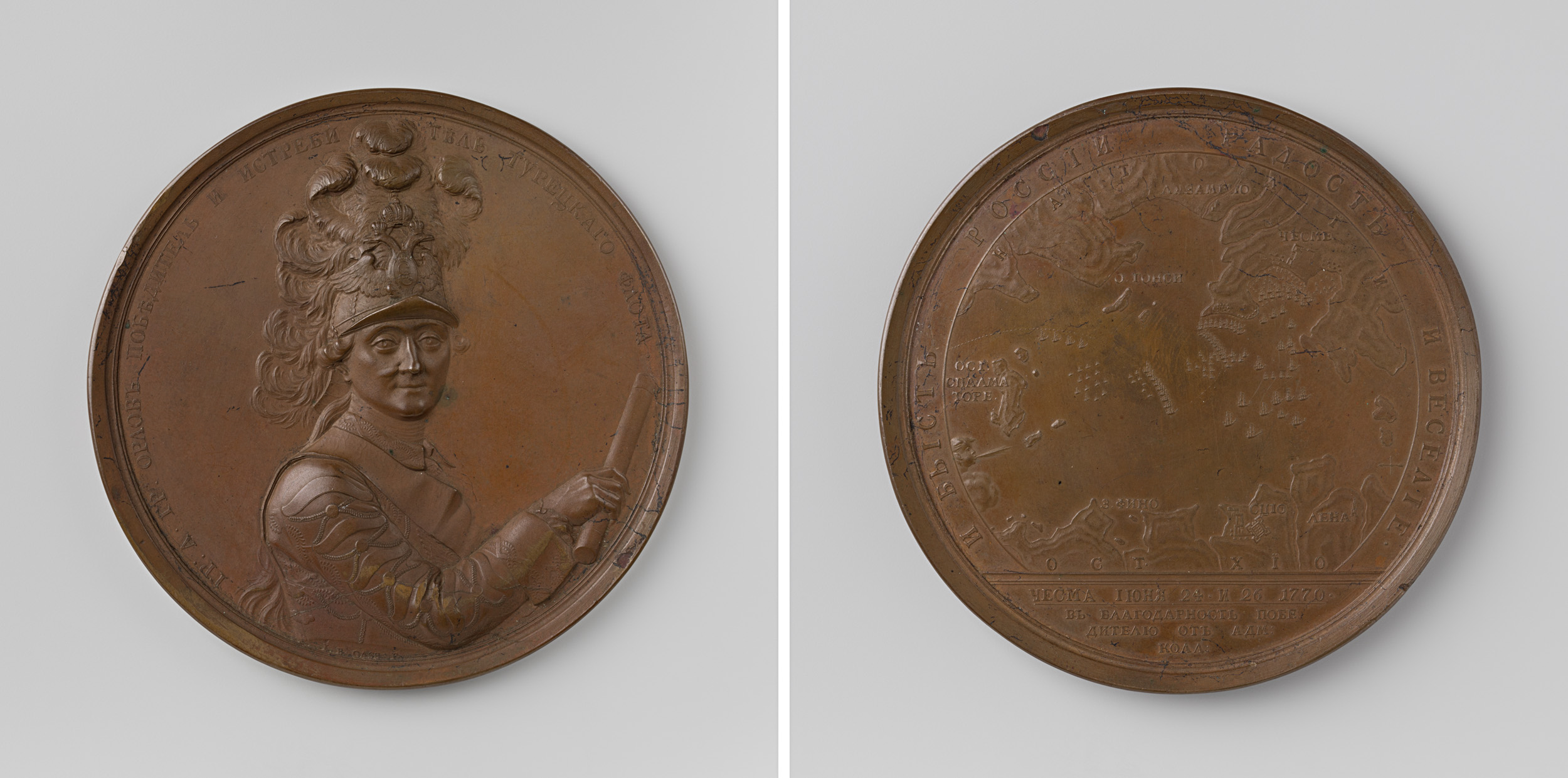 Overwinning op de Turken in de slag van Cesme, penni...