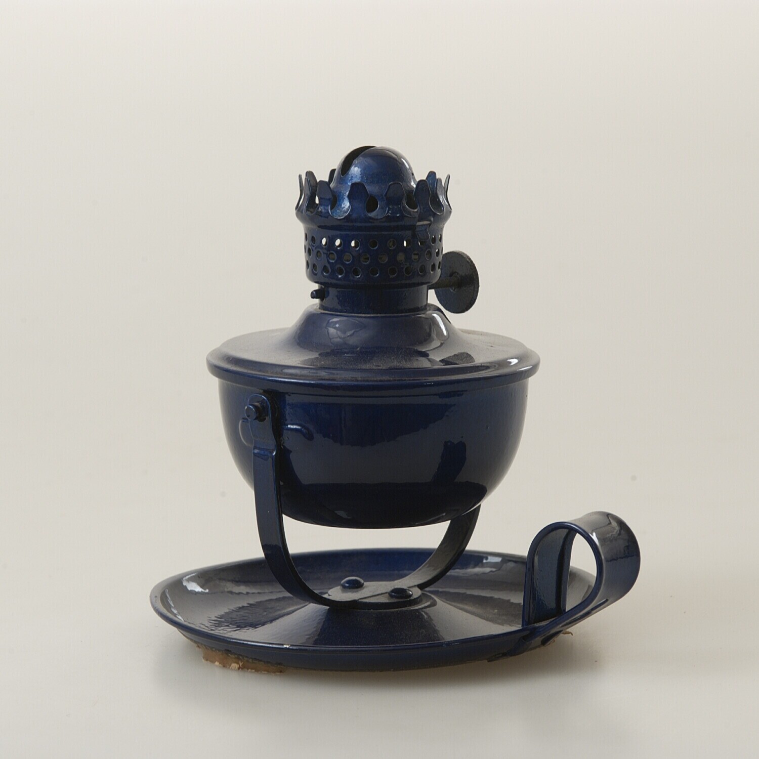 Onderstel van plaatijzer, onderdeel van een olielamp