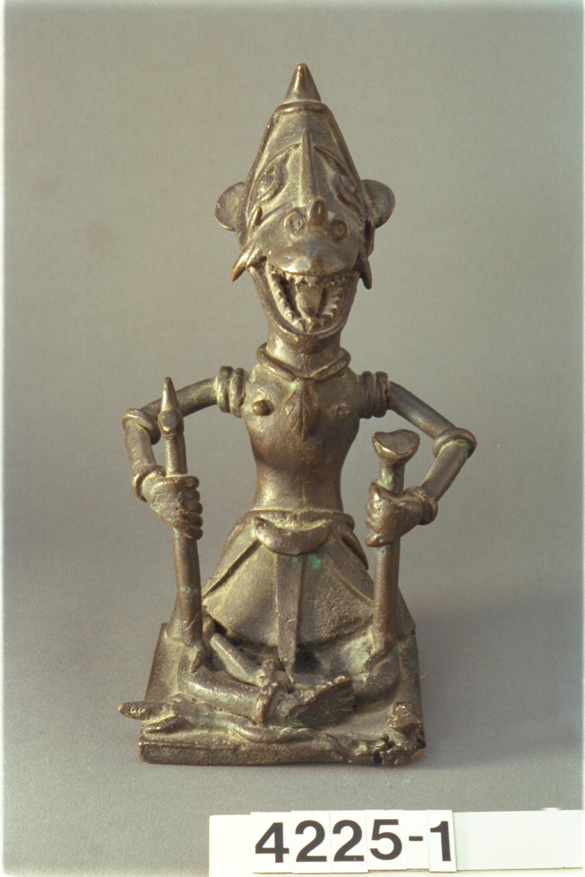 Bronzen beeldje half menselijk figuur met zwijnekop ...
