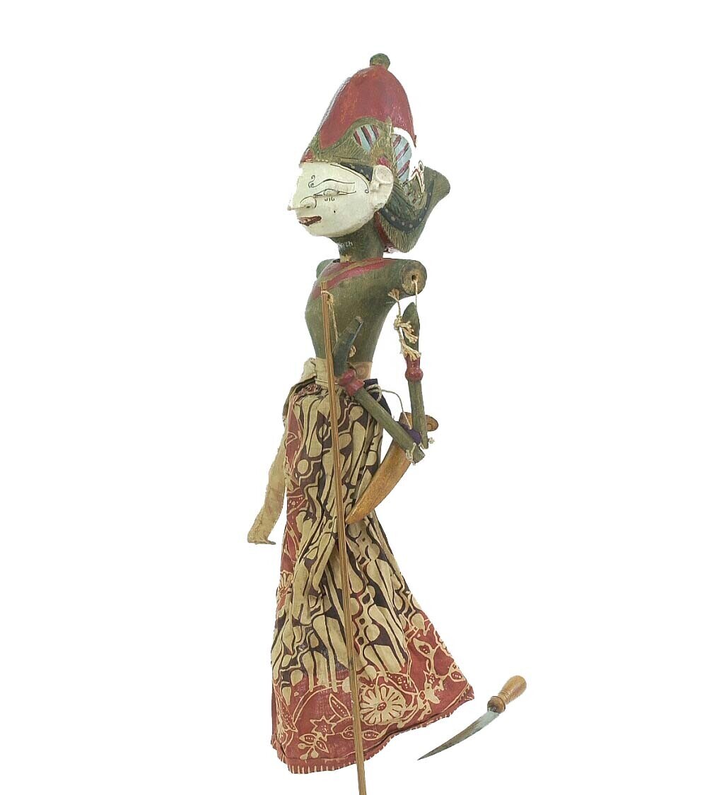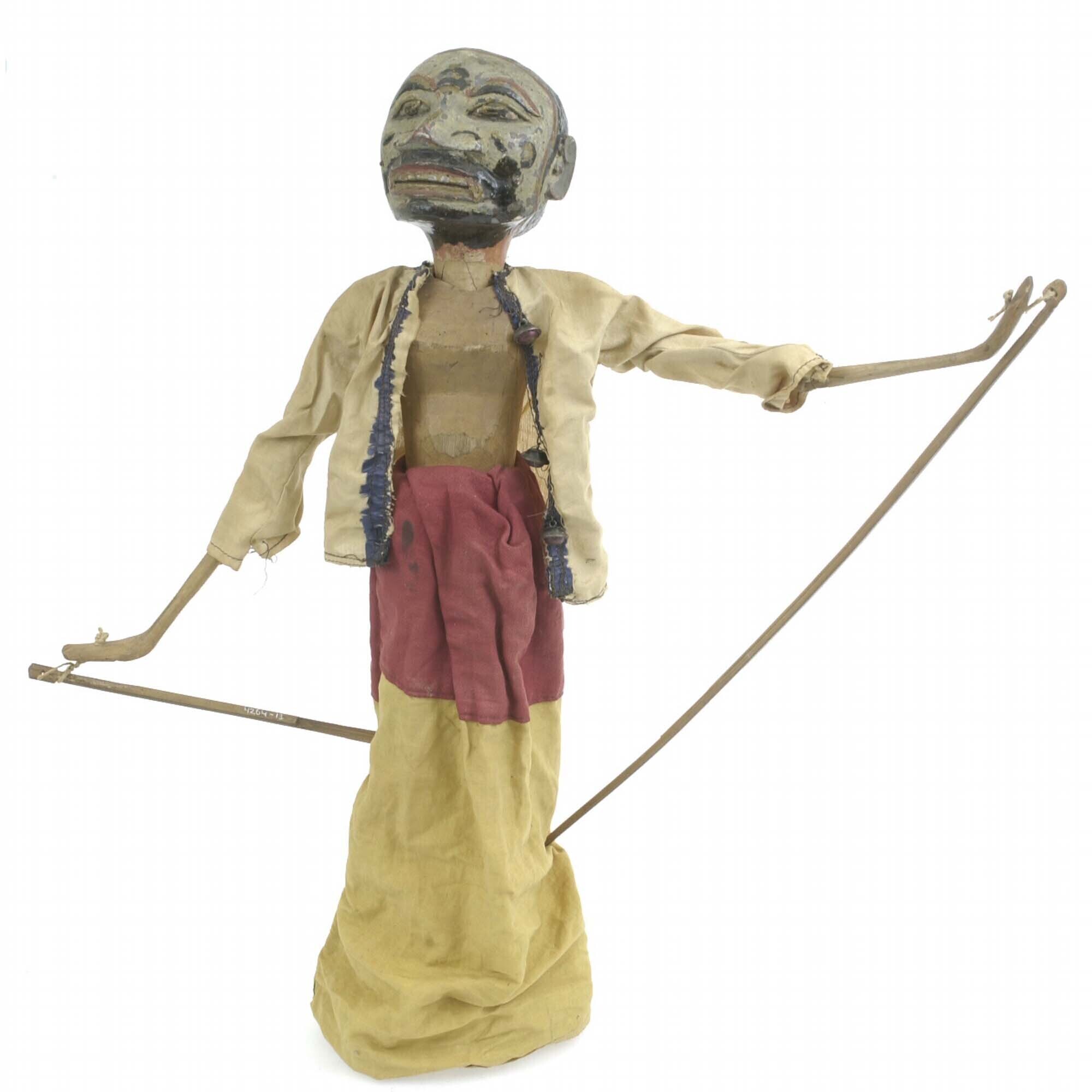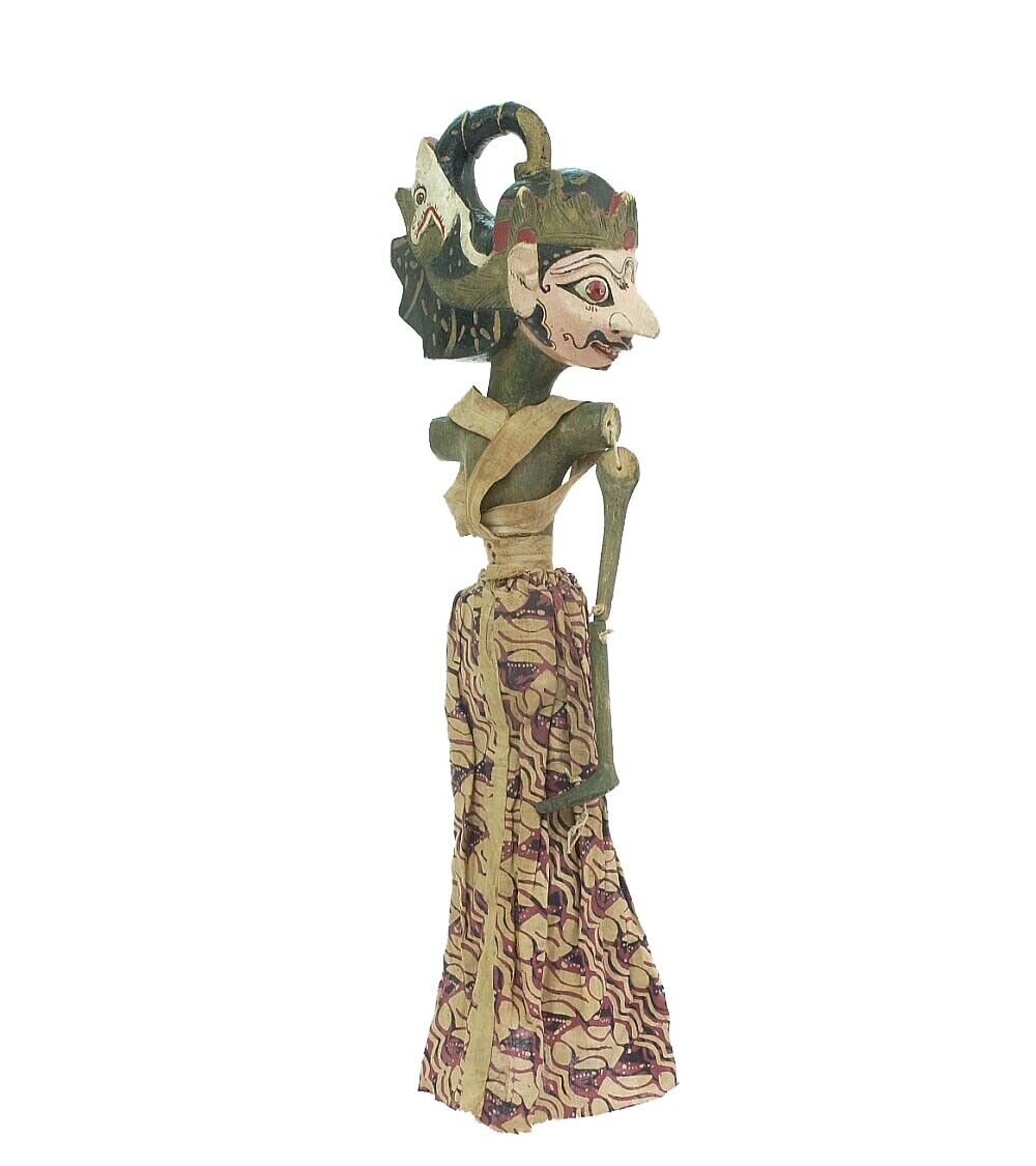 Ronde houten wayangpop (golek) een demonische figuur...