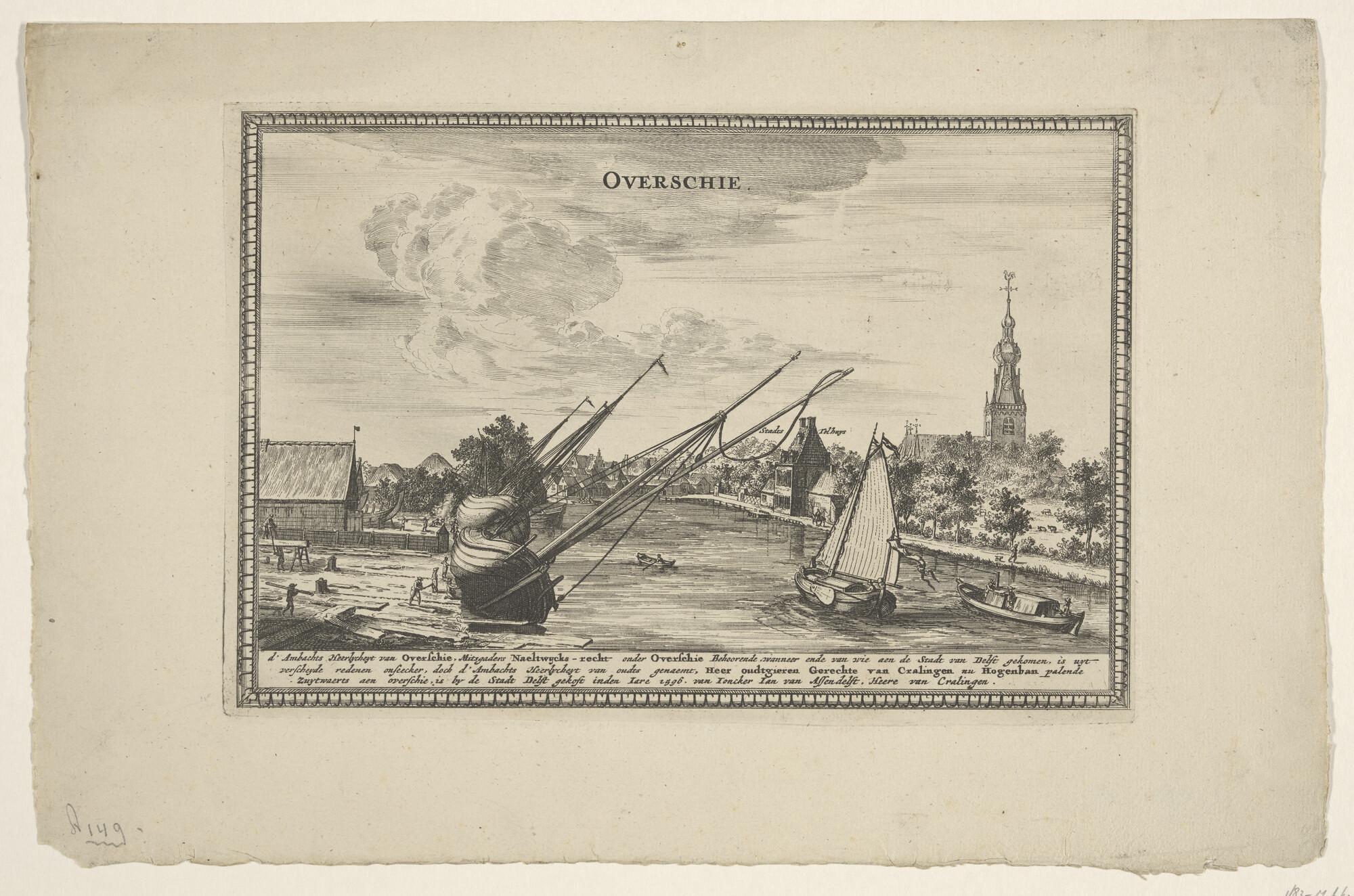 Gezicht op het dorp Overschie met een scheepswerf en...