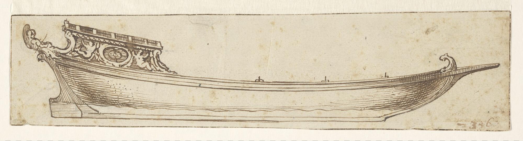 Een (spiegel)jacht op stuurboordzijde gezien