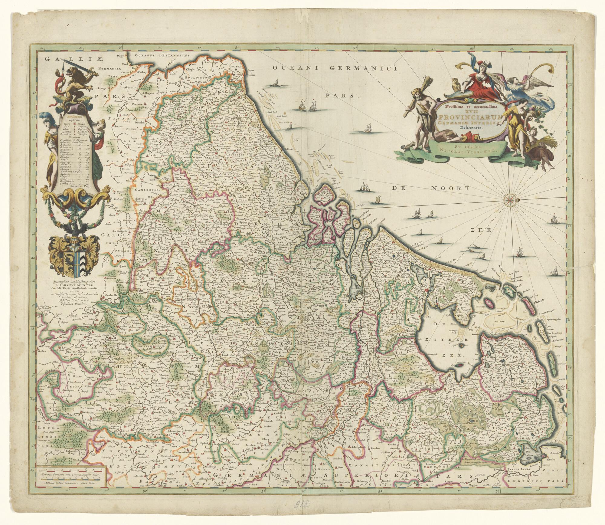 Met de hand gekleurde kaart van de Zeventien Provinciën