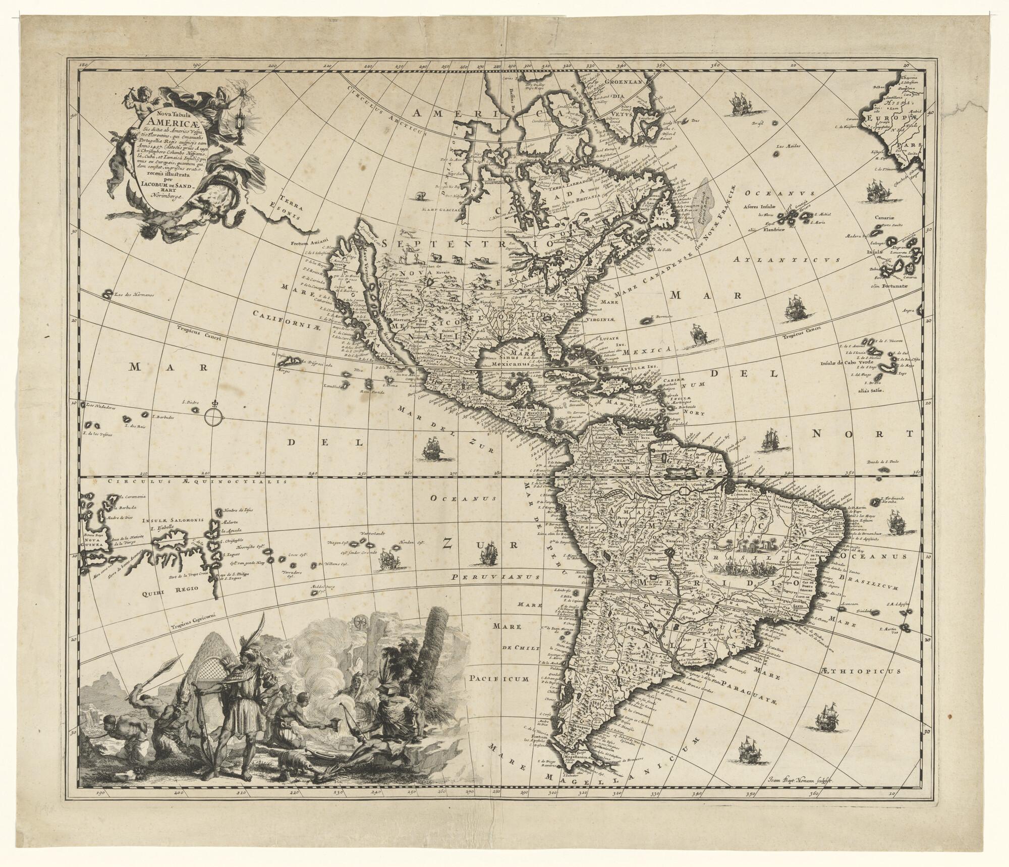 Kaart van Amerika, door Jacob von de Sandrart (1630 ...