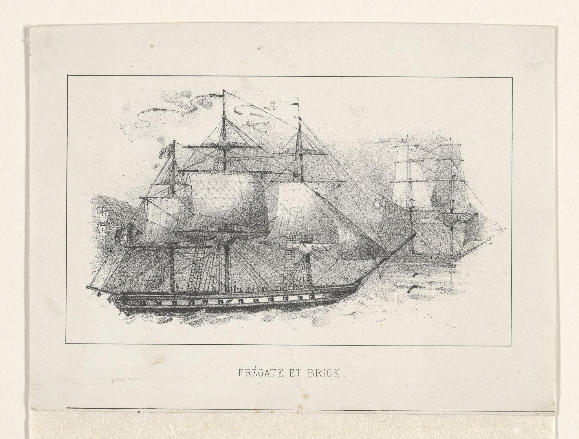 Prent nr 3 uit een serie van 8: een oorlogsfregat en...
