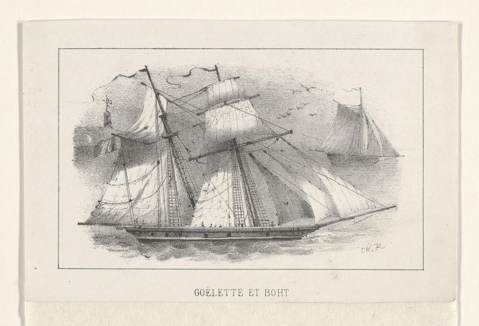 Prent nr 6 uit een serie van 8: een schoener en een ...