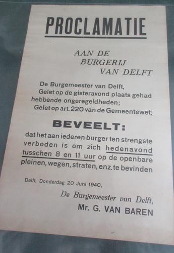 Bekendmaking van avondklok, “Proclamatie aan de burg...