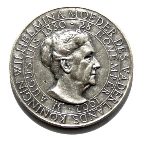 Metalen gedenkpenning, overlijden van koningin Wilhe...