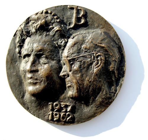 Bronzen penning 25 jarig huwelijk Juliana en Bernhard