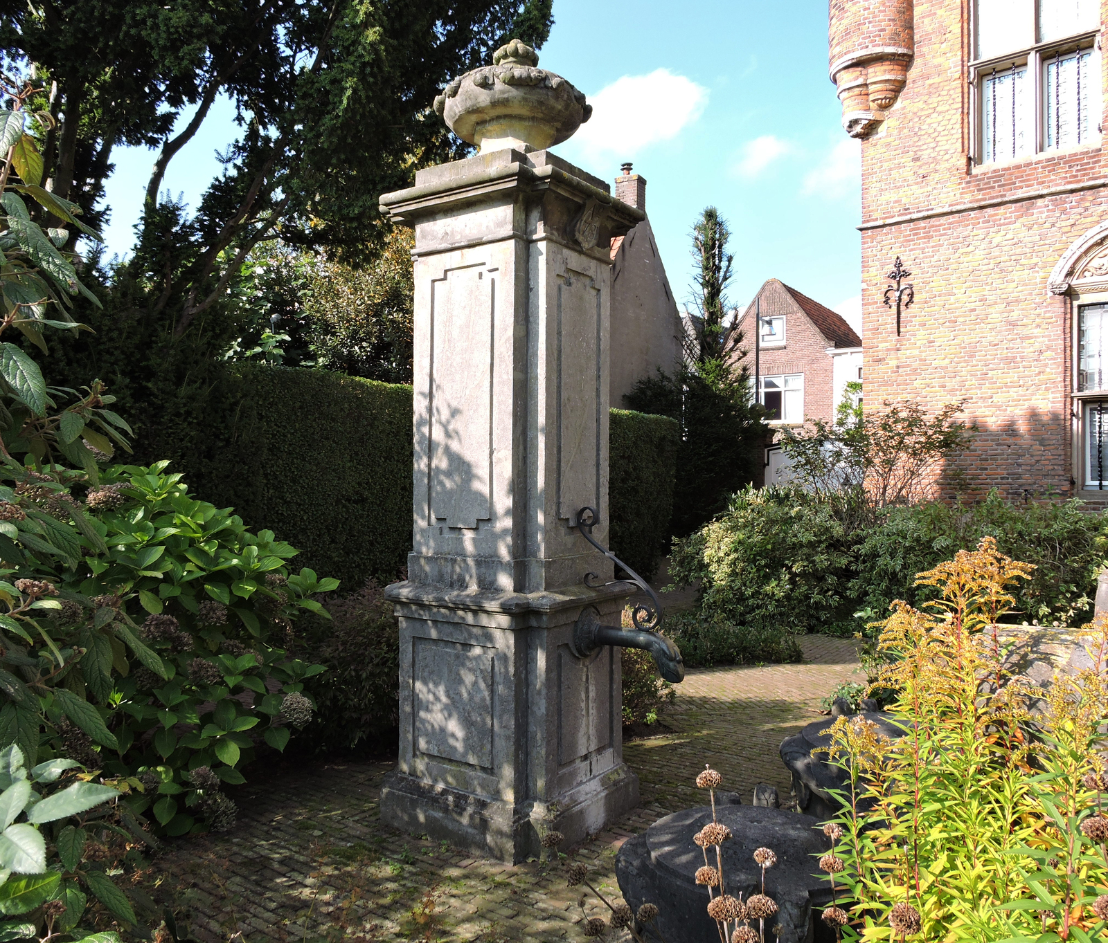 Hardstenen waterpomp op het terrein van huis Maarten...