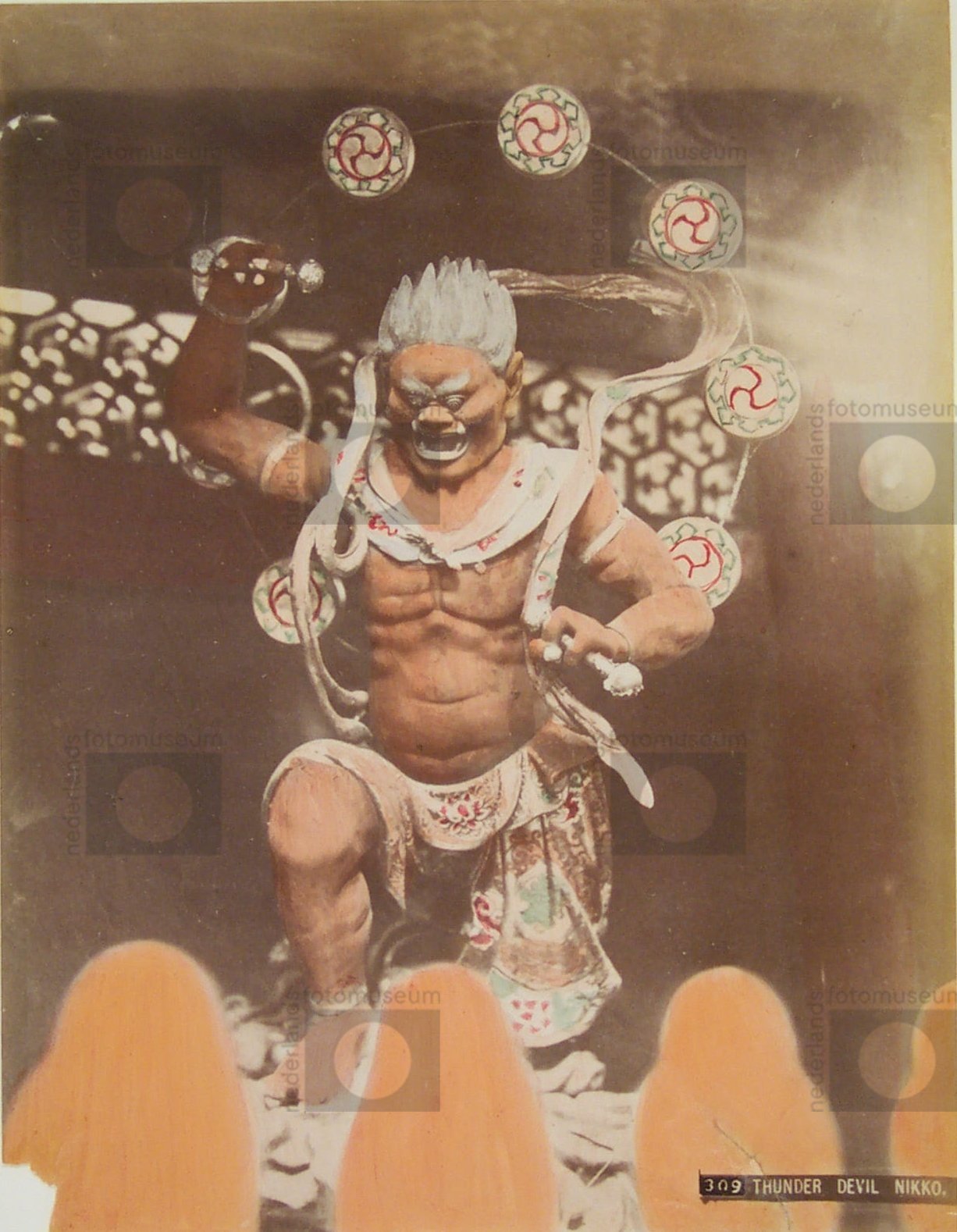 Sculptuur van onweersgod aan een tempel, Nikko, Japa...