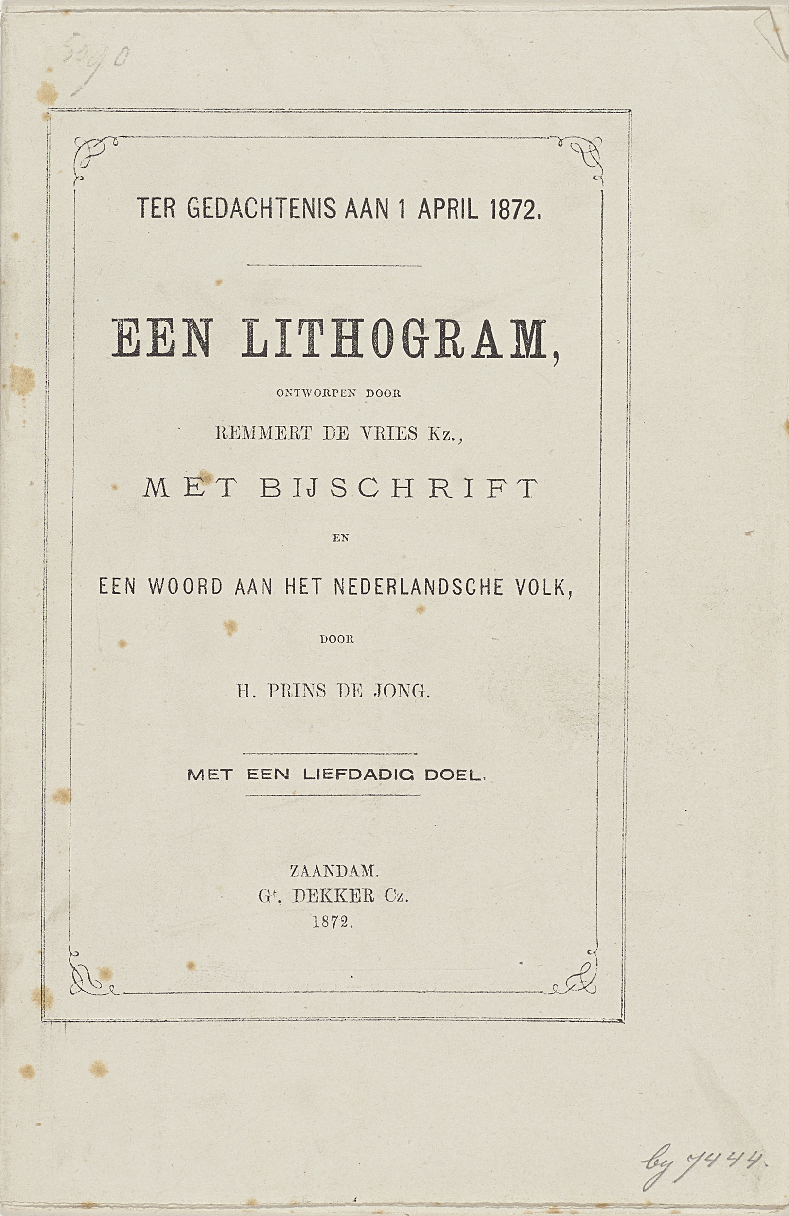 Ter gedachtenis aan 1 april 1872. Een lithogram, ont...