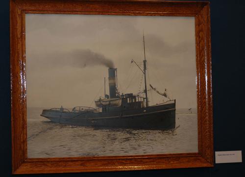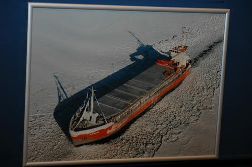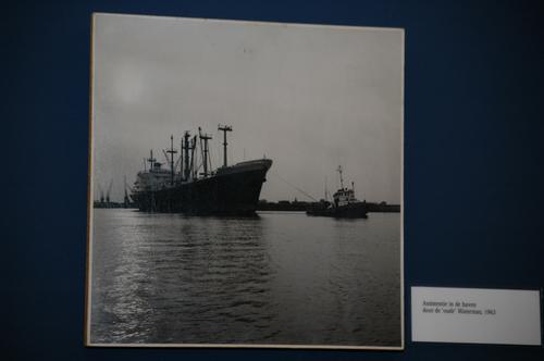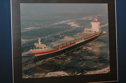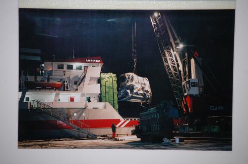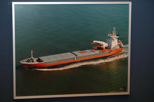 foto van ms Markborg gesleept op het IJsselmeer door...