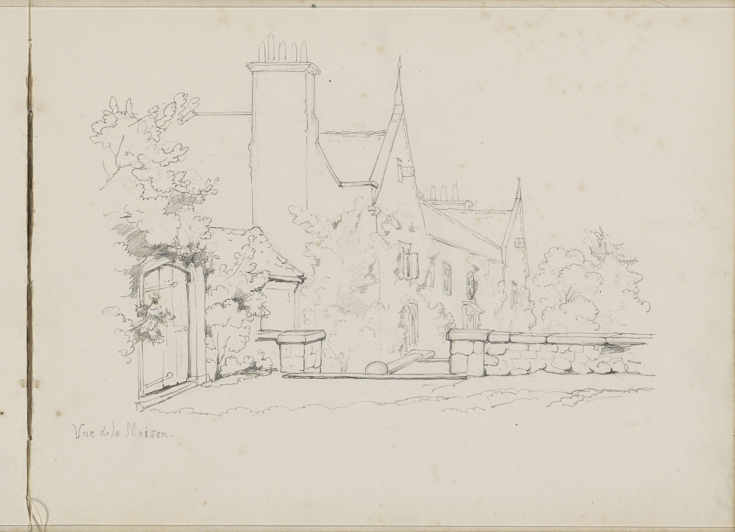Gezicht op een huis met twee puntgevels