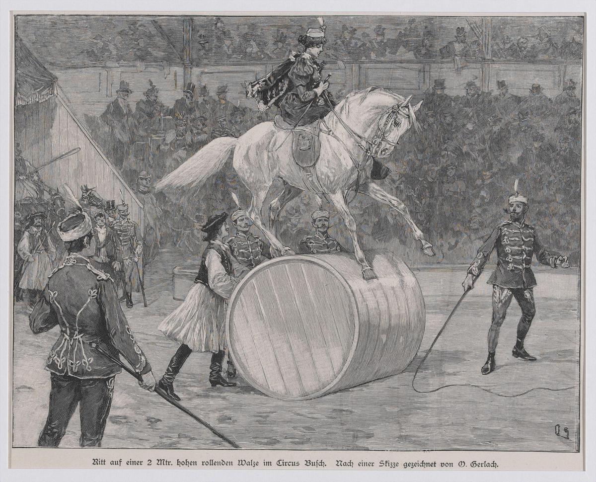 Dressuur van paarden, olifanten, zebra's; en acrobaten