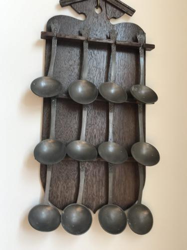 Lepelrek met 12 tinnen lepels