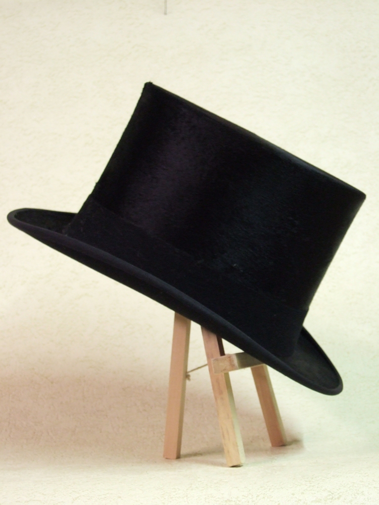 Hoge hoed van zwarte stof.