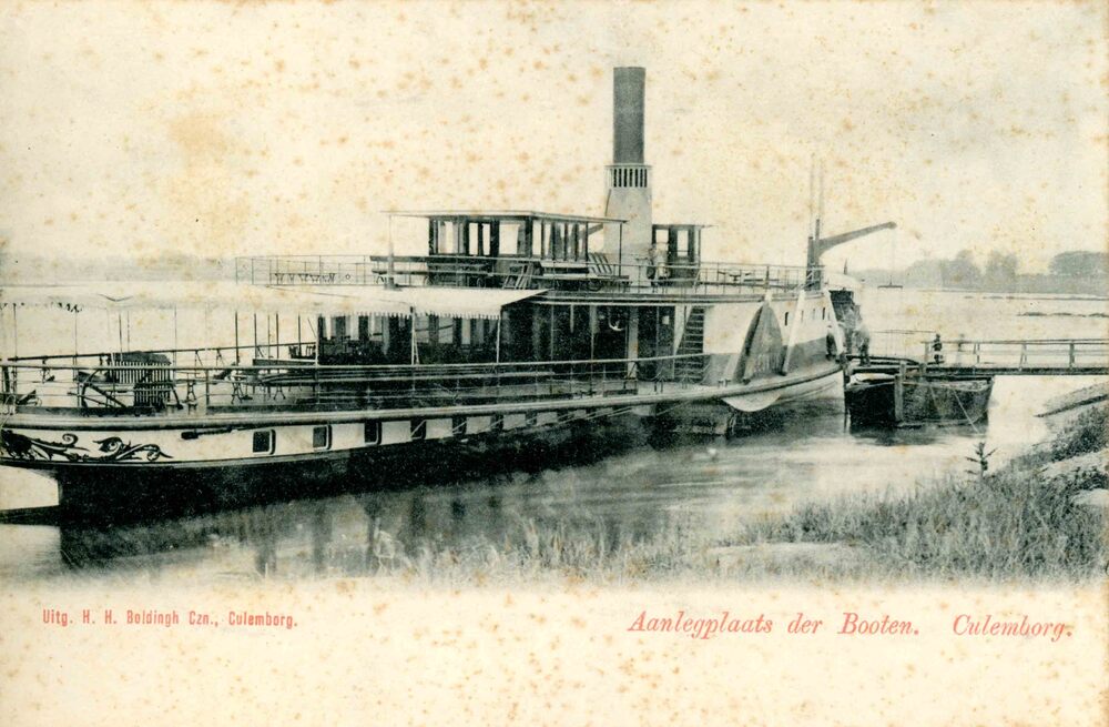 Ansichtkaart, voorstellende de raderboot op de Lek t...