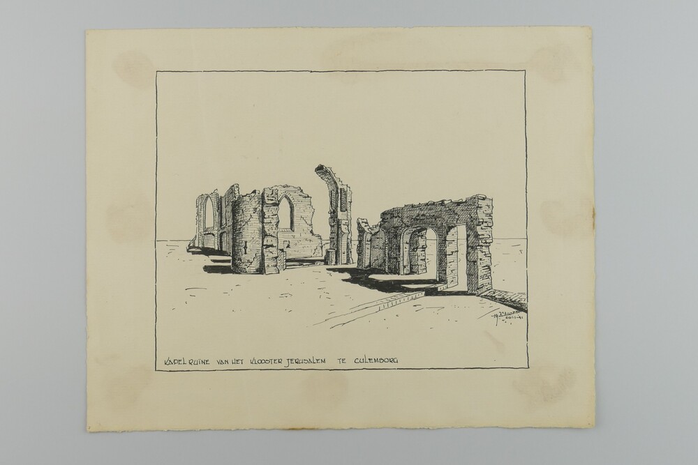 Tekening, voorstellend de ruïne van de kapel het Jer...