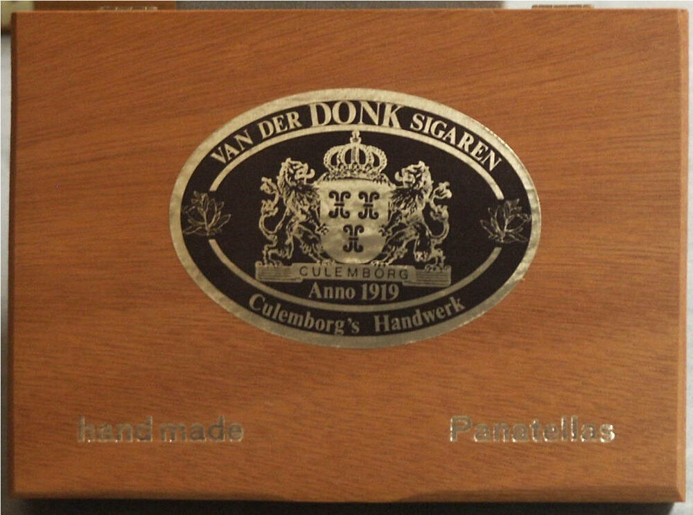 sigarenkist van hout met etiket Van der Donk Culembo...