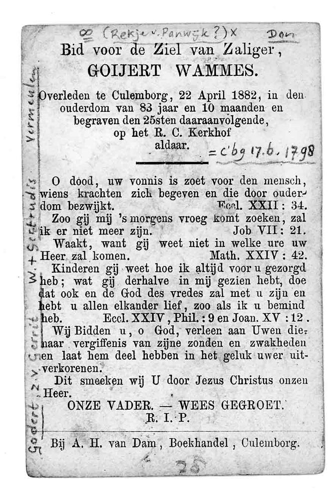 bidprent voor Goijert Wammes. Geboren 17-06-1798 te ...