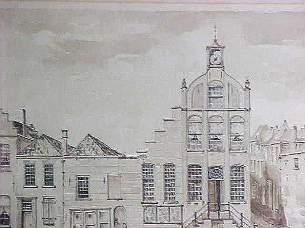 Aquarel in sepia, voorstellende het oude stadhuis Ti...