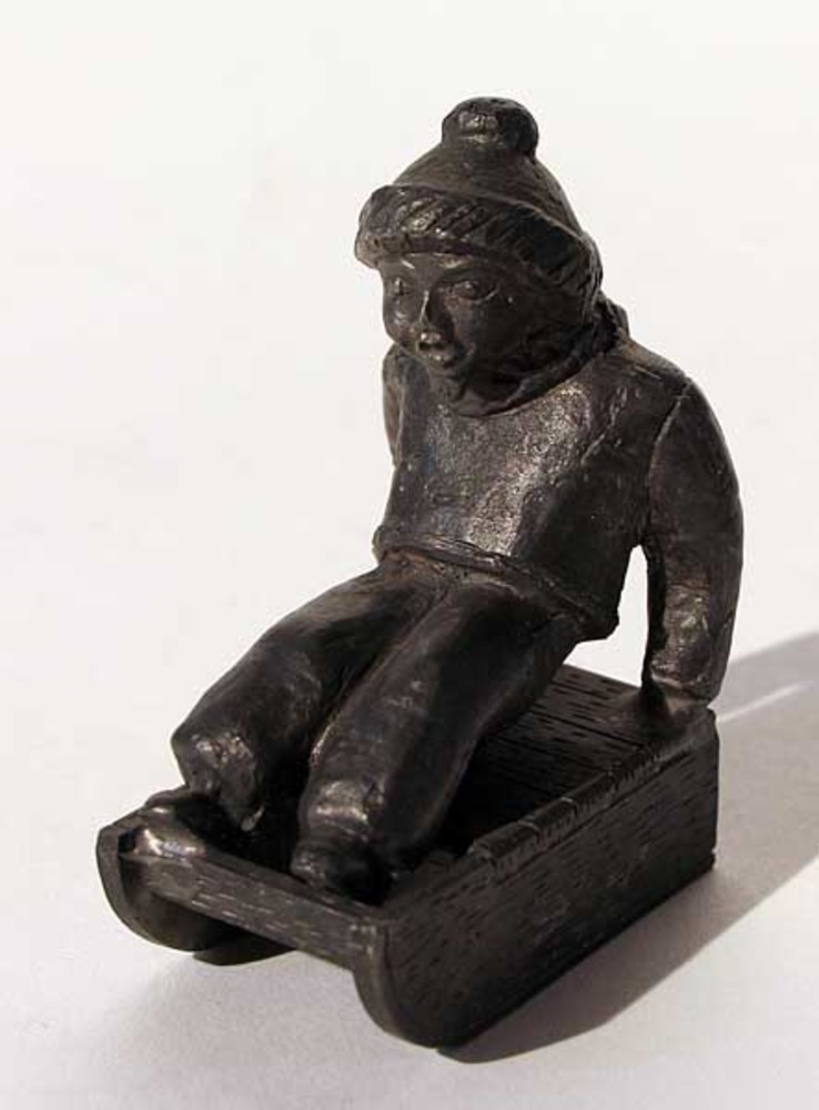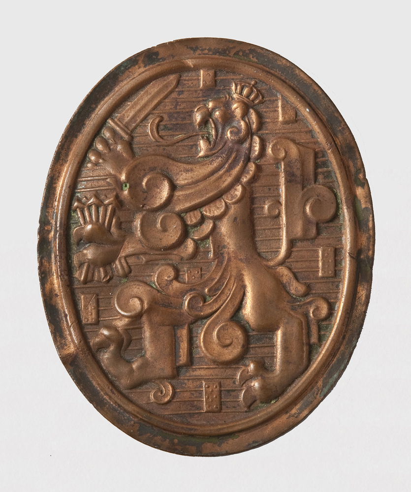Helmversiering in de vorm van een ovaal koperen plaa...