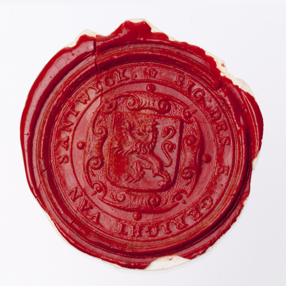 Lakzegelstempel vervaardigd van zilver, tekst: Sig. ...