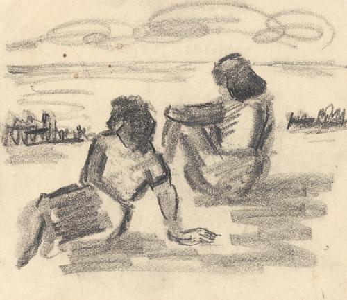 2 Zittende figuren in een landschap